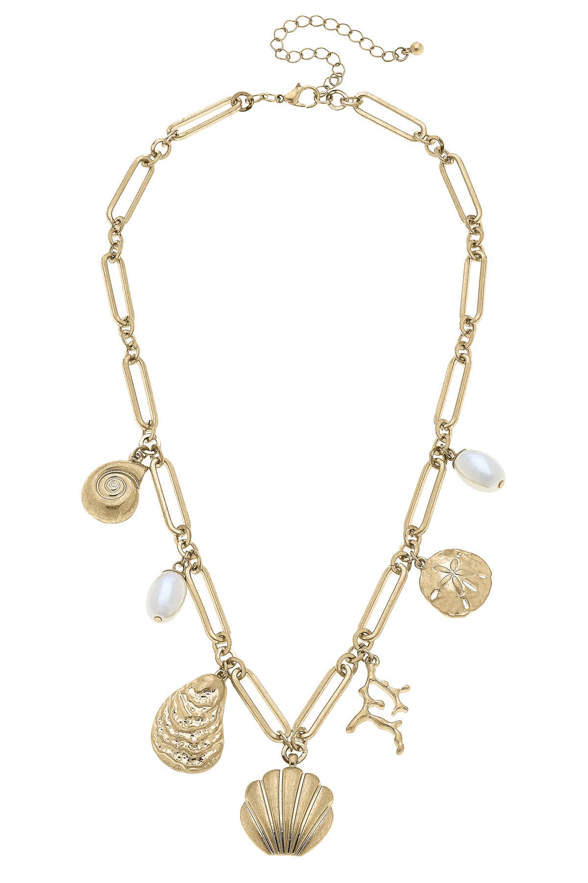 Set sail in style with our Under the Sea Charm Necklace — a coastal treasure that captures the magic of the ocean. Crafted with shiny gold plating, this whimsical yet elegant piece features a collection of delicate sea-inspired charms that shimmer with every movement. Perfect for adding a touch of seaside sophistication to any outfit, this adjustable 17" necklace layers beautifully or stands out all on its own. A timeless reminder of sunlit shores and breezy days by the water.