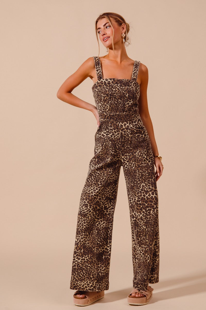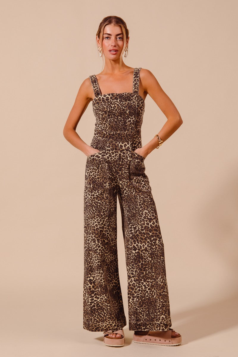 Make a bold coastal statement with this washed leopard print twill jumpsuit, designed with a wide-leg silhouette and functional side pockets. The soft, structured fabric offers all-day comfort, while the versatile design makes it easy to style year-round—layer it over a tee, under a sweater, or wear it solo for sunny days. With its effortless fit and chic print, this jumpsuit is a must-have for playful yet polished coastal living.