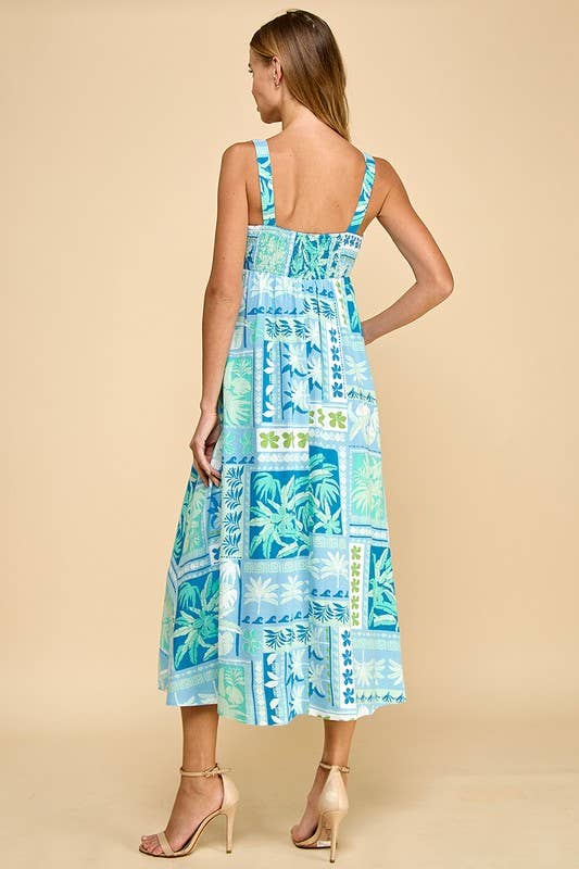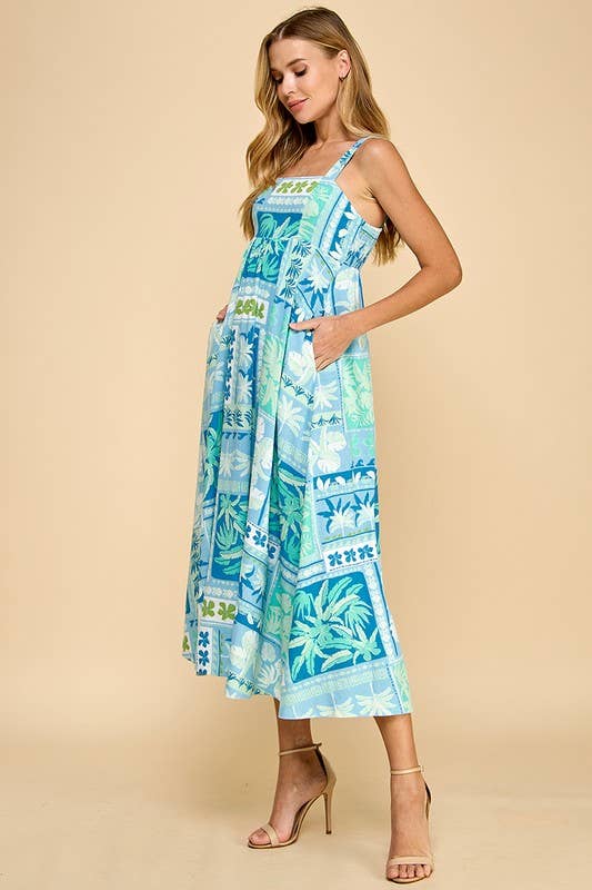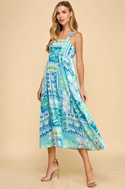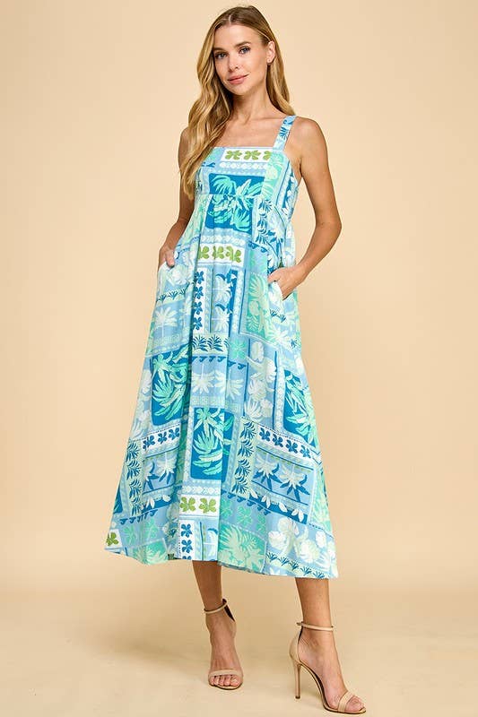 Flowing with vibrant coastal hues of turquoise, lime, and ocean blue, the Tidepool Breeze Midi Dress is a breezy beauty made for sun-soaked days and seaside strolls. Featuring a flattering square neckline, wide shoulder straps, and a smocked back for an easy, flexible fit, this abstract print dress blends comfort and style effortlessly. Fully lined and complete with side pockets for a practical touch, it’s the perfect midi for beachside brunches, vacation evenings, or any moment you want to capture that carefree coastal glow.