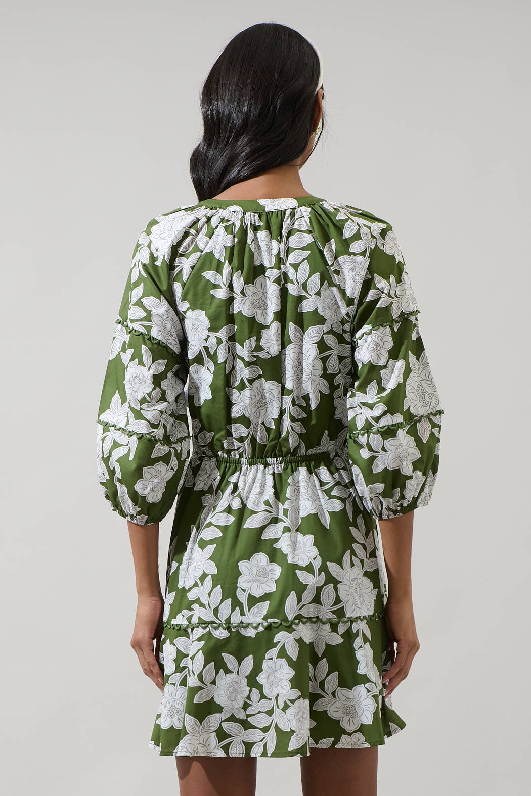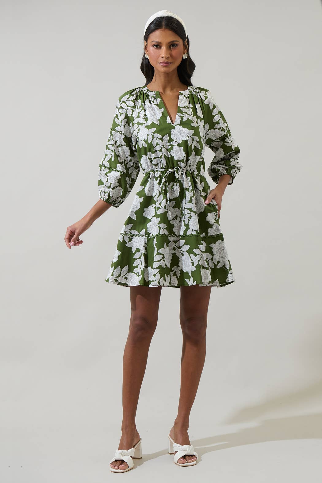 Bring timeless charm to your wardrobe with our Floral Split-Neck Mini Dress in soft cream and green hues. Designed with a flattering split neckline and breezy balloon half sleeves finished with elastic cuffs, this dress blends effortless elegance with coastal ease. The adjustable drawstring waist flatters your silhouette, while the delicate floral print adds a touch of romance. Perfect for every season—from summer strolls to crisp fall afternoons—pair it with sandals, boots, or heels for a look that transitions seamlessly, no matter the occasion