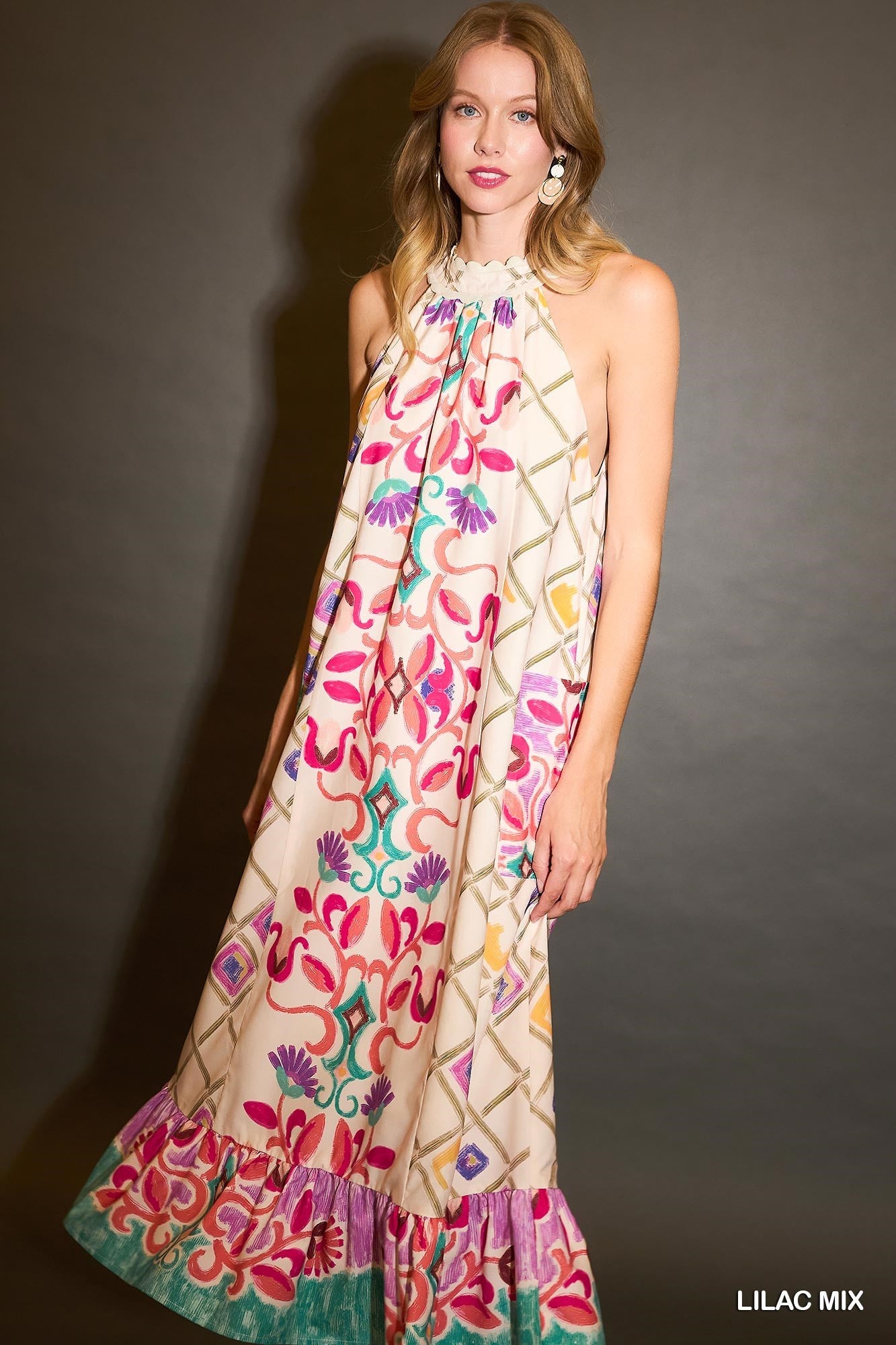 Lilac Mix Halter Maxi Dress – Coastal Color with Effortless Flow