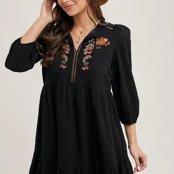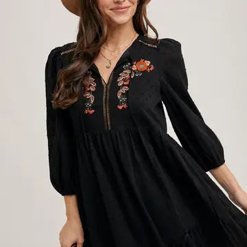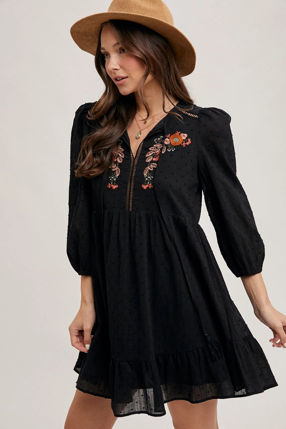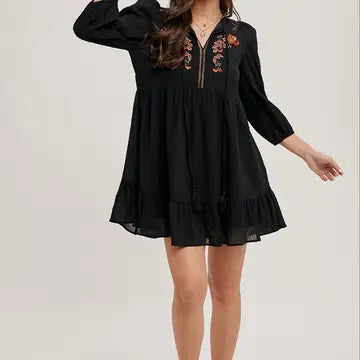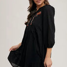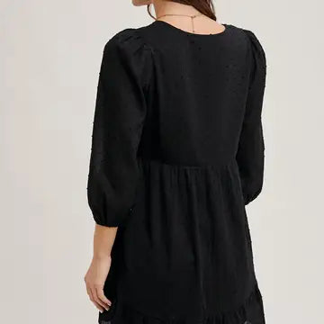 The Pura Coastal Embroidered Ruffle Babydoll Dress brings breezy charm to classic sophistication. Crafted in timeless black, it features intricate embroidery that adds artisanal detail, while playful ruffled accents enhance its feminine silhouette. The short sleeves and flowing hemline create an airy, flattering fit—perfect for beachside strolls, weekend getaways, or sunset dinners. Effortlessly versatile, this dress pairs beautifully with sandals for daytime ease or heels for an elevated coastal-chic look