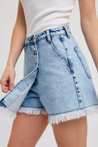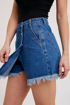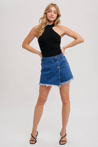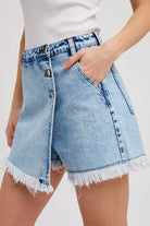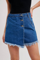 The Denim Frayed-Trim Skort with Button Front is a trendy and versatile garment that seamlessly combines the comfort of shorts with the stylish appeal of a skirt. The button-front detailing adds a classic touch, while the frayed trim provides a trendy and casual vibe. This skort is perfect for warm-weather days, offering the freedom and ease of movement of shorts while maintaining a chic and put-together appearance. The denim fabric adds a casual and laid-back feel, making it suitable for various occasions, from casual outings to daytime events. Whether you pair it with a tucked-in tee or a stylish blouse, the Denim Frayed-Trim Skort is a fashion-forward choice for a playful and comfortable look.