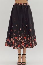 Bring effortless elegance to every season with our Coastal Bloom Border Print Two-Piece Set. The midi skirt features a beautifully placed floral border design with an elasticated back waistband, side zipper closure, and hidden side pockets for ease and charm. Paired with the matching waist-length top—finished with a collared neckline, button closure, and cuffed short sleeves—this set offers the perfect balance of polish and coastal ease. Lightweight, woven, and non-sheer, each piece can be worn together for a stunning coordinated look or styled separately for endless versatility. A timeless coastal outfit that flows gracefully from fall to spring, and even into summer.