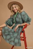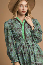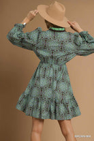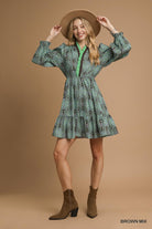 Channel effortless seaside charm in the Coastal Boho Breeze Dress, a stunning mix of earthy brown and turquoise-inspired tones that echo the colors of sand and sea. Designed with a flattering waistline, ruffled contrast trim, and a tiered skirt, this dress flows beautifully with every step. Long puff sleeves and a V-neckline add a touch of romance, while the 100% cotton fabric keeps it light, breathable, and ready for year-round wear. Whether styled with sandals for a coastal getaway or boots for a breezy fall afternoon, this boho beauty is a versatile piece made to wander.