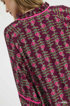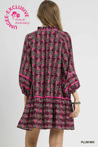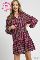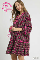Step into effortless coastal charm with the Coastal Plum Boho Tunic Dress, a breezy mini that blends playful details with a relaxed, feminine silhouette. The rich plum hue, adorned with floral vine print, is accented by bold contrast piping for a touch of boho flair. Featuring a split V-neckline with tassel ties, 3/4 elastic-hem sleeves, and a tiered ruffle skirt, this dress is lined for comfort and movement. Perfect for seaside strolls, sunset dinners, or year-round getaways, it’s a versatile piece that captures the free-spirited coastal vibe of Pura Coastal.
