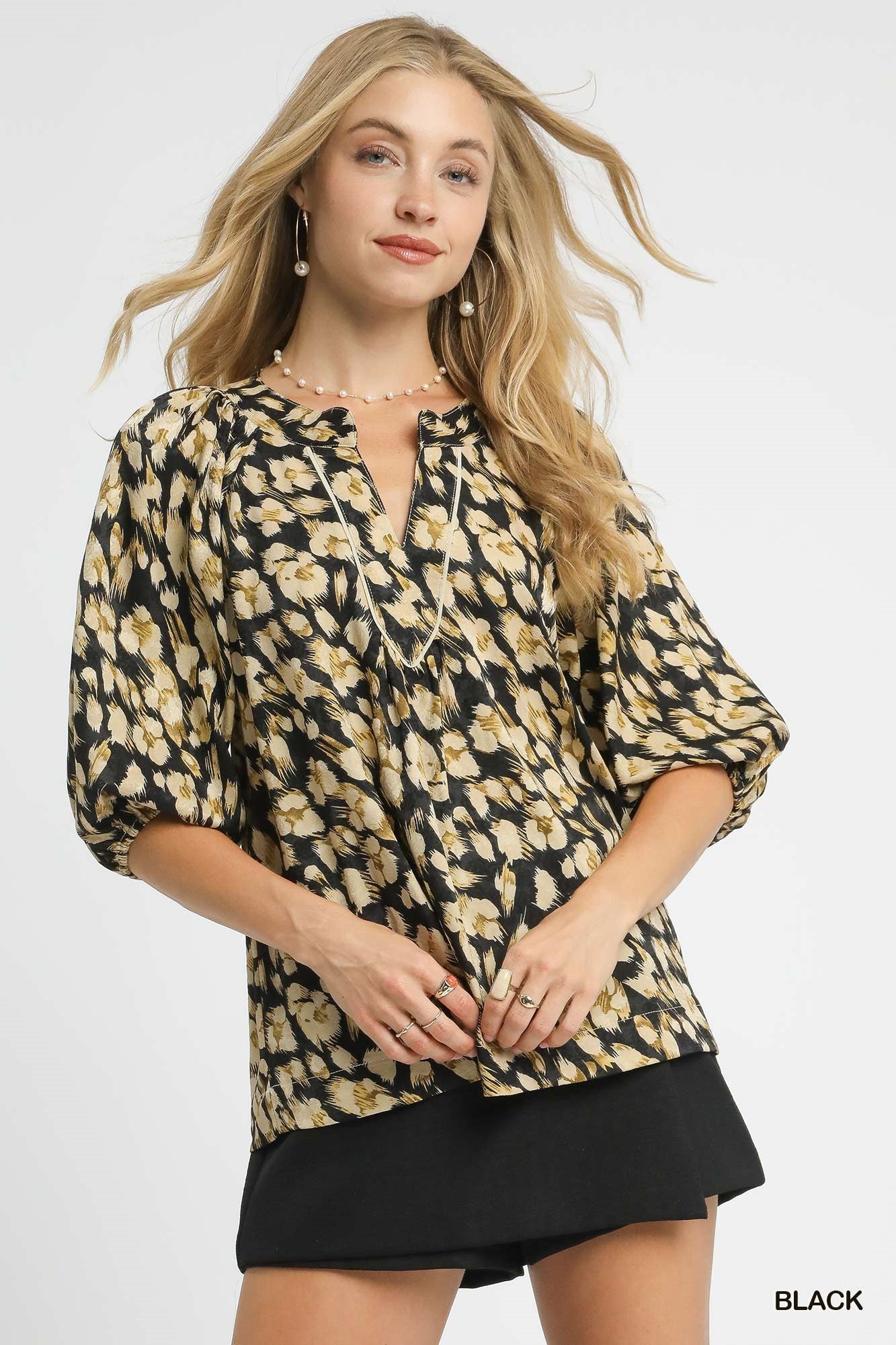 Bring a touch of the wild to the water’s edge with the Coastal Wild Leopard V-Neck Blouse. This breezy, flowy top features a bold yet elegant leopard print in a lightweight fabric that’s perfect for warm days and cool coastal evenings. The contrast trim at the V-notch neckline adds a hint of polish, while the 3/4 elastic-cuffed sleeves offer relaxed sophistication. Whether paired with our black jacquard pants, tassel-hem cropped trousers, or a chic black mini skort, this blouse transitions effortlessly from summer to fall with timeless coastal charm.