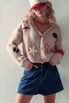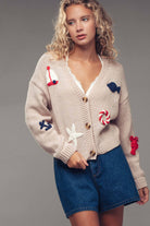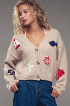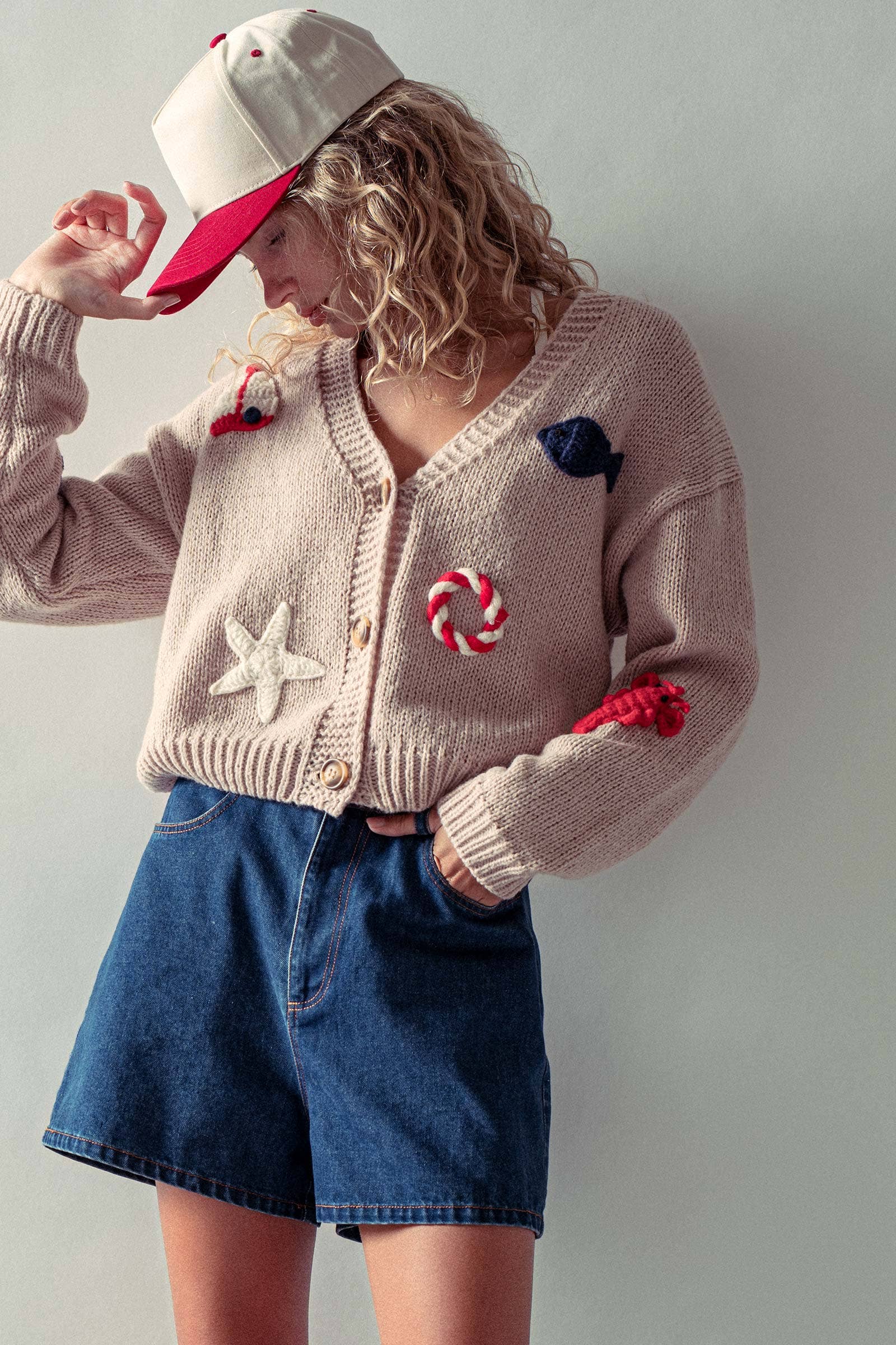 Sail into effortless style with the Harbor Haven Crochet Cardigan — a whimsical knit that radiates coastal charm. Crafted from soft, breathable fabric, this beautiful cardigan features handcrafted crochet patches inspired by seaside life, including a starfish, anchor, lobster, and candy swirl. Its relaxed silhouette with dropped shoulders and roomy sleeves makes it perfect for layering over tanks, dresses, or lightweight tops. Finished with classic buttons and artisanal detailing, this piece brings a touch of nautical nostalgia and playful elegance to your Pure Coastal collection — a year-round favorite for breezy, beach-inspired living.