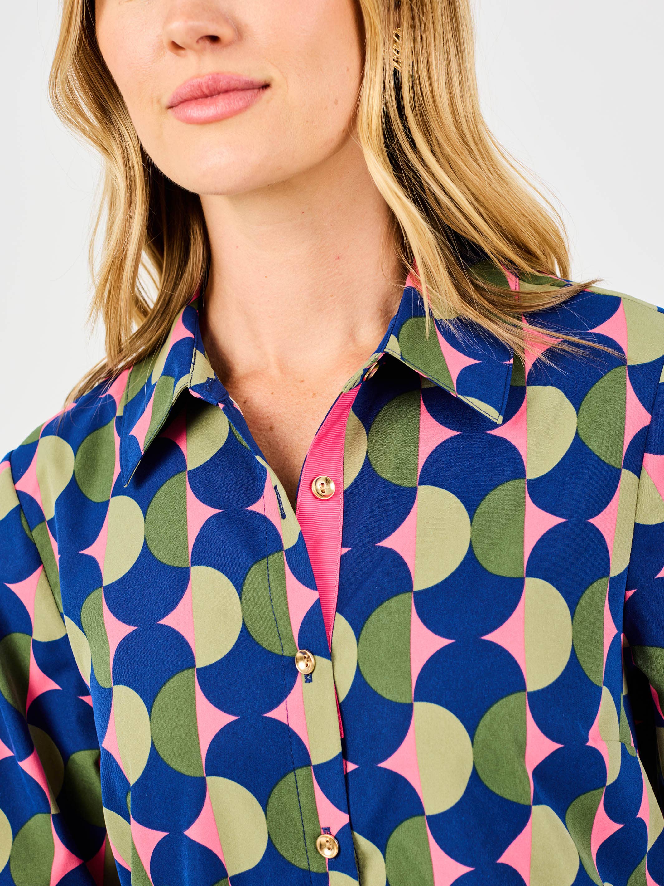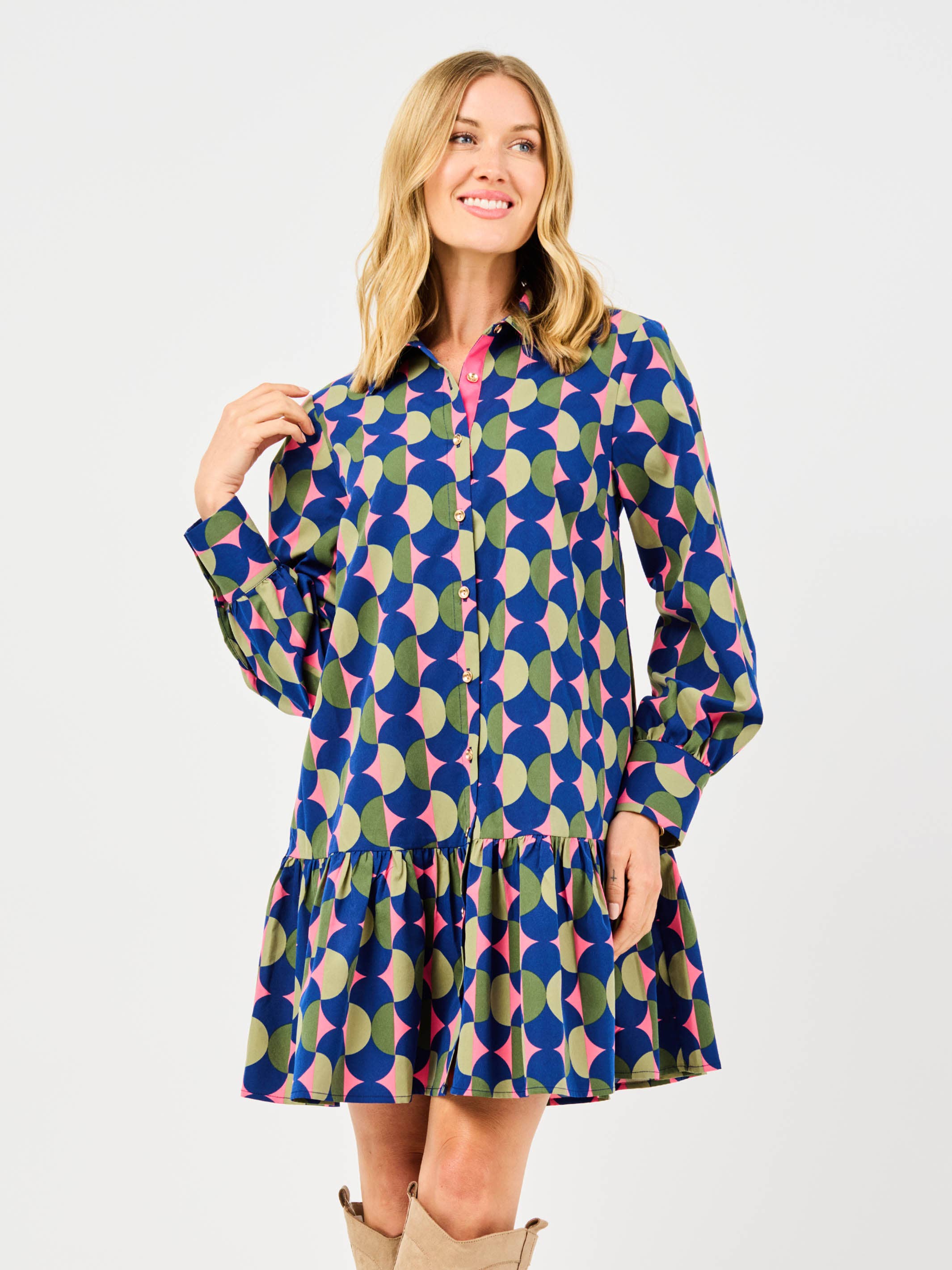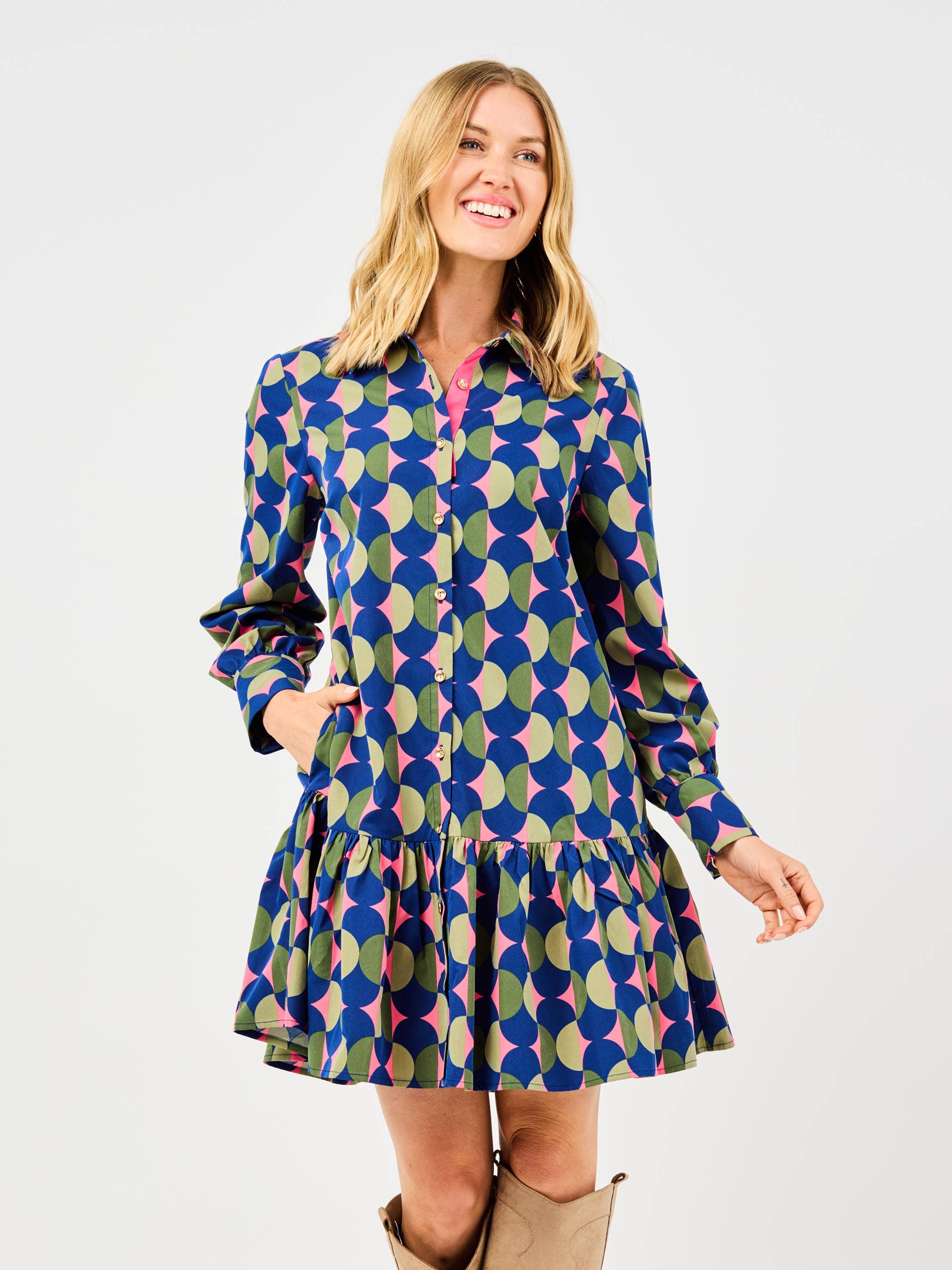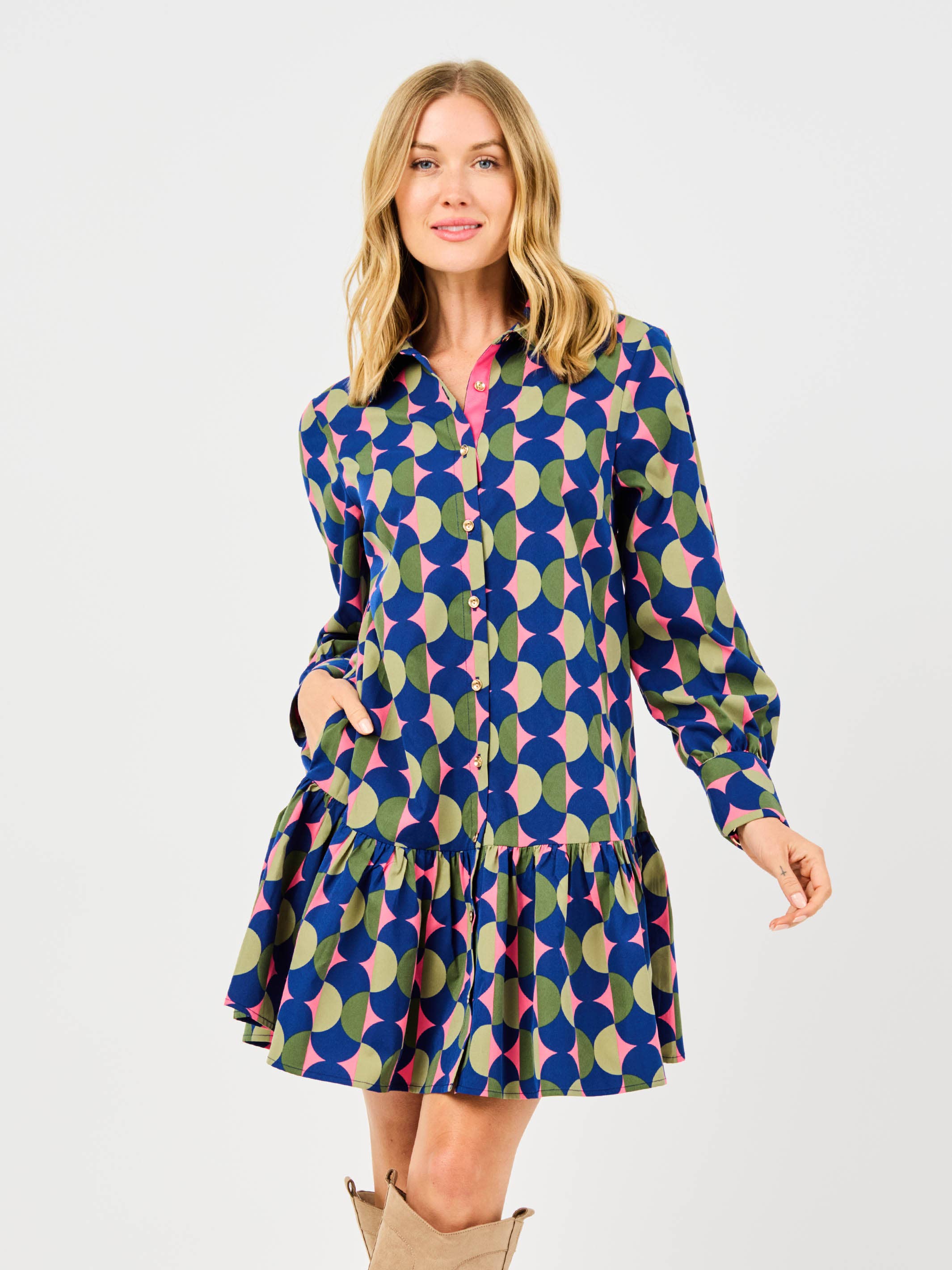 Effortlessly elegant and endlessly wearable, the Fiona Dress is a transitional staple designed for life by the coast. Whether you're strolling through crisp fall markets or enjoying a breezy spring brunch, this timeless piece adapts beautifully through the seasons. Its refined button-front design is elevated by a contrast ribbon trim along the placket, while long sleeves with button cuffs offer a polished finish. A softly tiered hem brings a feminine flow that moves with you. Lightweight yet refined, it’s the perfect coastal dress for fall, winter, and early spring days near the sea.