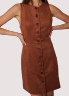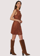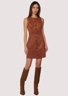 Step into autumn elegance with our Regal Poise Mini Dress — a sleeveless faux suede shift in a rich coastal coffee hue. Featuring a flattering button-down front and polished silhouette, this mini is the perfect blend of structure and softness. Pair it with our leopard print cropped jacket for a bold, elevated look that transitions seamlessly from coastal strolls to cozy fall gatherings. Chic, versatile, and timeless — a must-have for your fall wardrobe.
