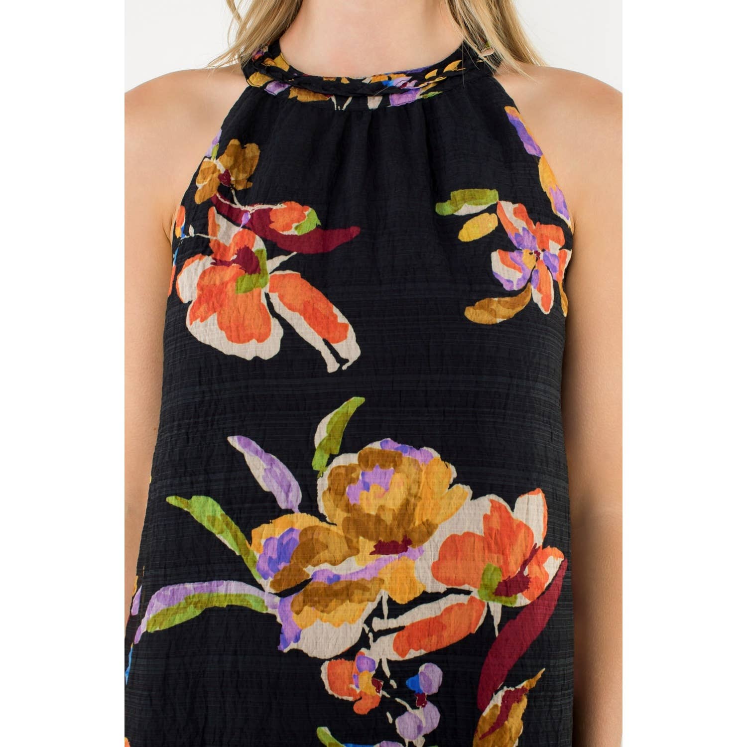 Delicate, charming, and endlessly versatile, the Coastal Petals Halter Dress brings a fresh take on floral for any season. Featuring a leafless floral print in a flattering halter silhouette, this dress transitions beautifully from warm coastal days to cooler evenings layered under a cardigan, sweater, or jacket. Designed in the USA with attention to detail and timeless appeal, it’s the perfect piece for seaside brunches, fall gatherings, or winter getaways with a coastal twist. Effortlessly chic and ready for year-round styling.