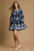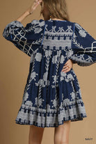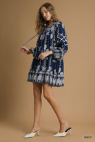 Infused with wanderlust and effortless charm, the Sunkissed Sands Tribal Mini Dress is your go-to for coastal getaways and sunny escapes. Featuring a bold tribal print, this lightweight mini dress is full of personality with its breezy balloon sleeves, flowy tiered hem, and playful front tie-neck with ribbon detail. Easy to wear and effortlessly stylish, it pairs beautifully with sandals, sun hats, and salty air. Whether you're exploring seaside markets or enjoying dinner by the shore, this dress brings a free-spirited, coastal vibe to every moment