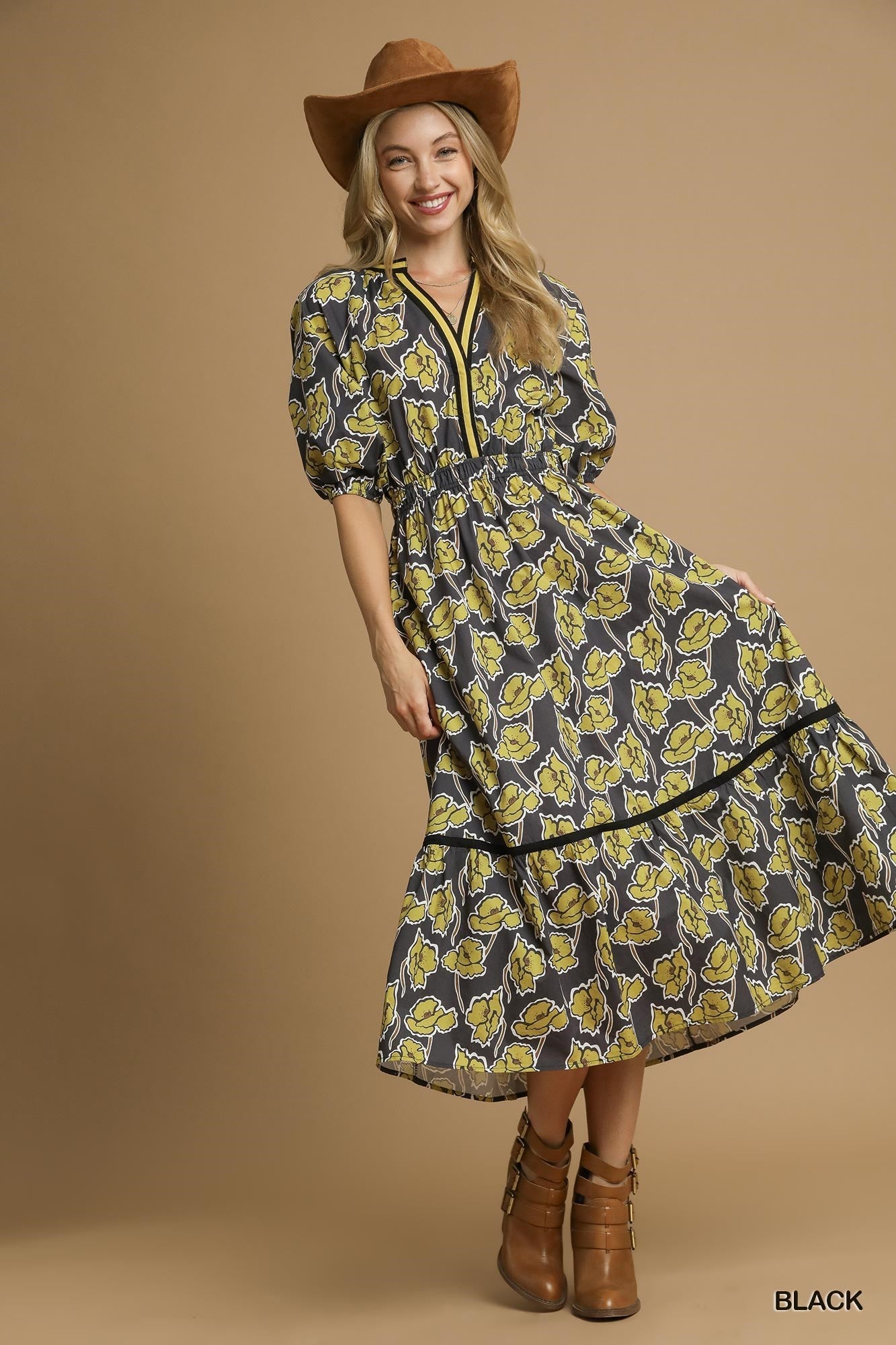 Bask in the beauty of coastal color with our Sunlit Blooms Midi Dress – a vibrant, effortless statement in 100% breathable cotton. This eye-catching midi features a split V-neckline with contrast trim, tiered puff sleeves, and a striking color block band that flatters every silhouette. The vivid floral print captures the joy of seaside days and summer nights, while the relaxed fit offers all-day comfort with a touch of graceful charm. Lightweight, easygoing, and undeniably chic—this is your go-to dress for coastal getaways and year-round gatherings.