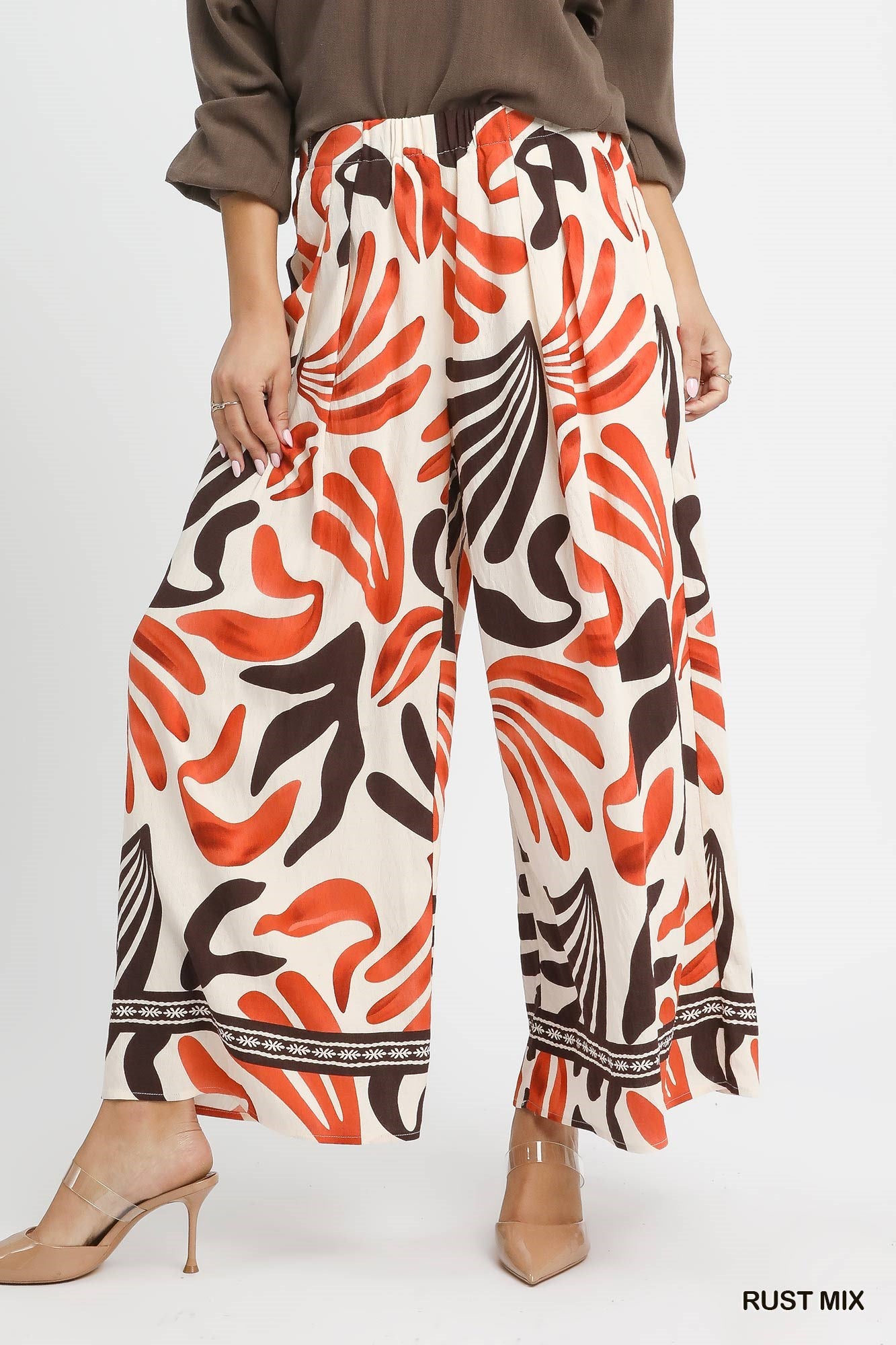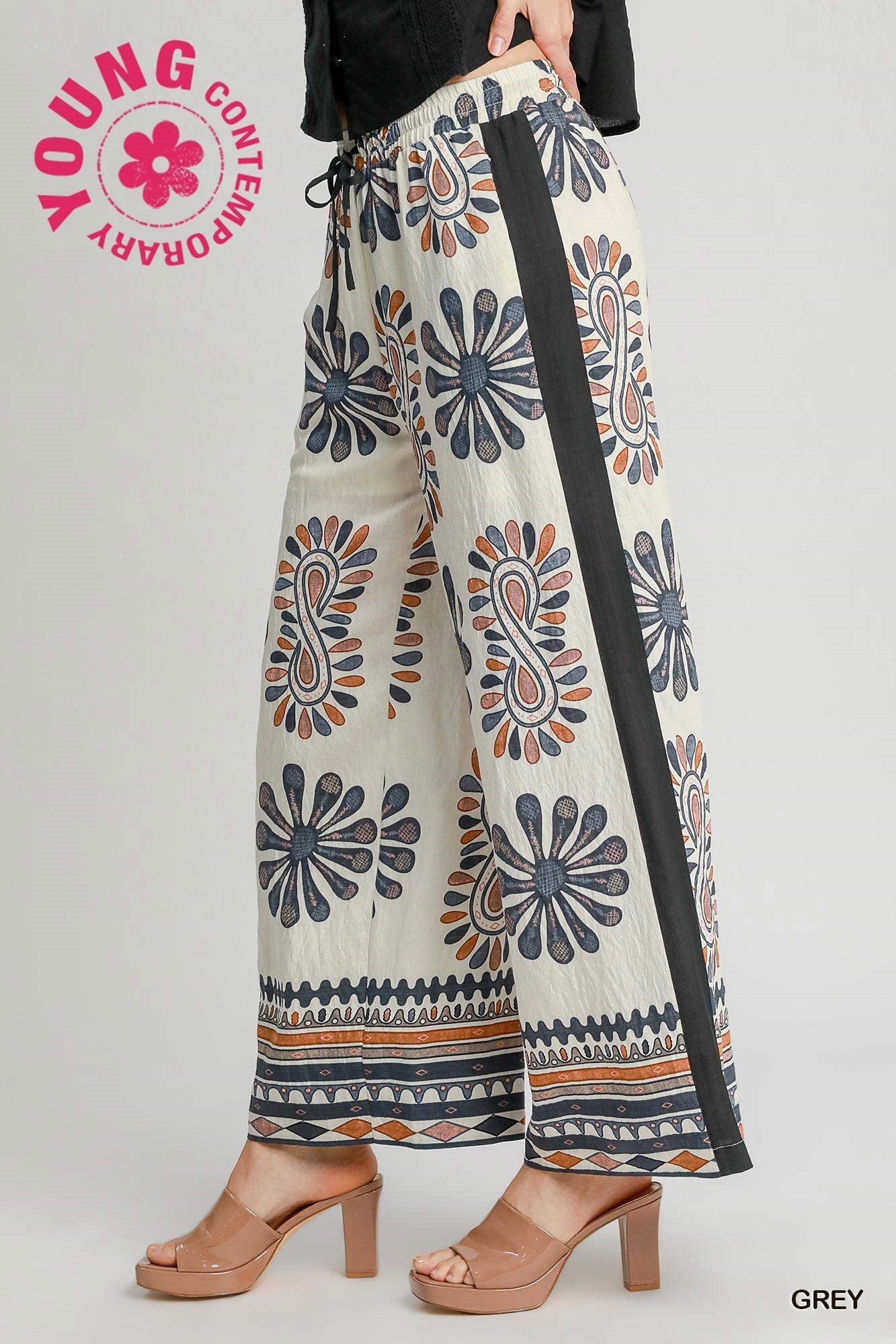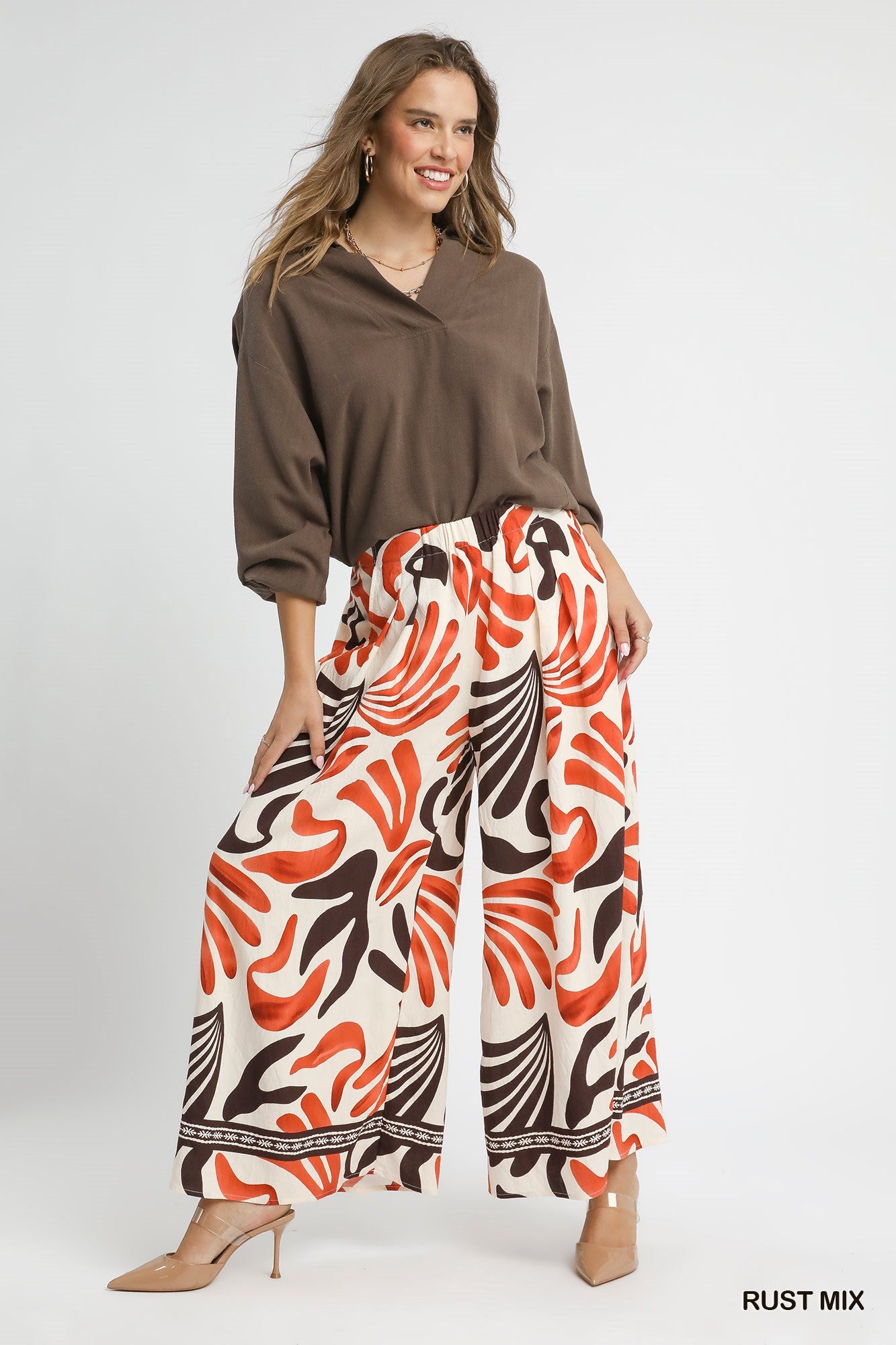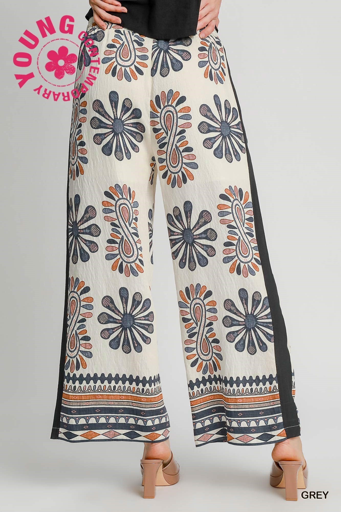 Floral Breeze High-Waisted Pants – Flowy Elegance in Gray, Rust & Black