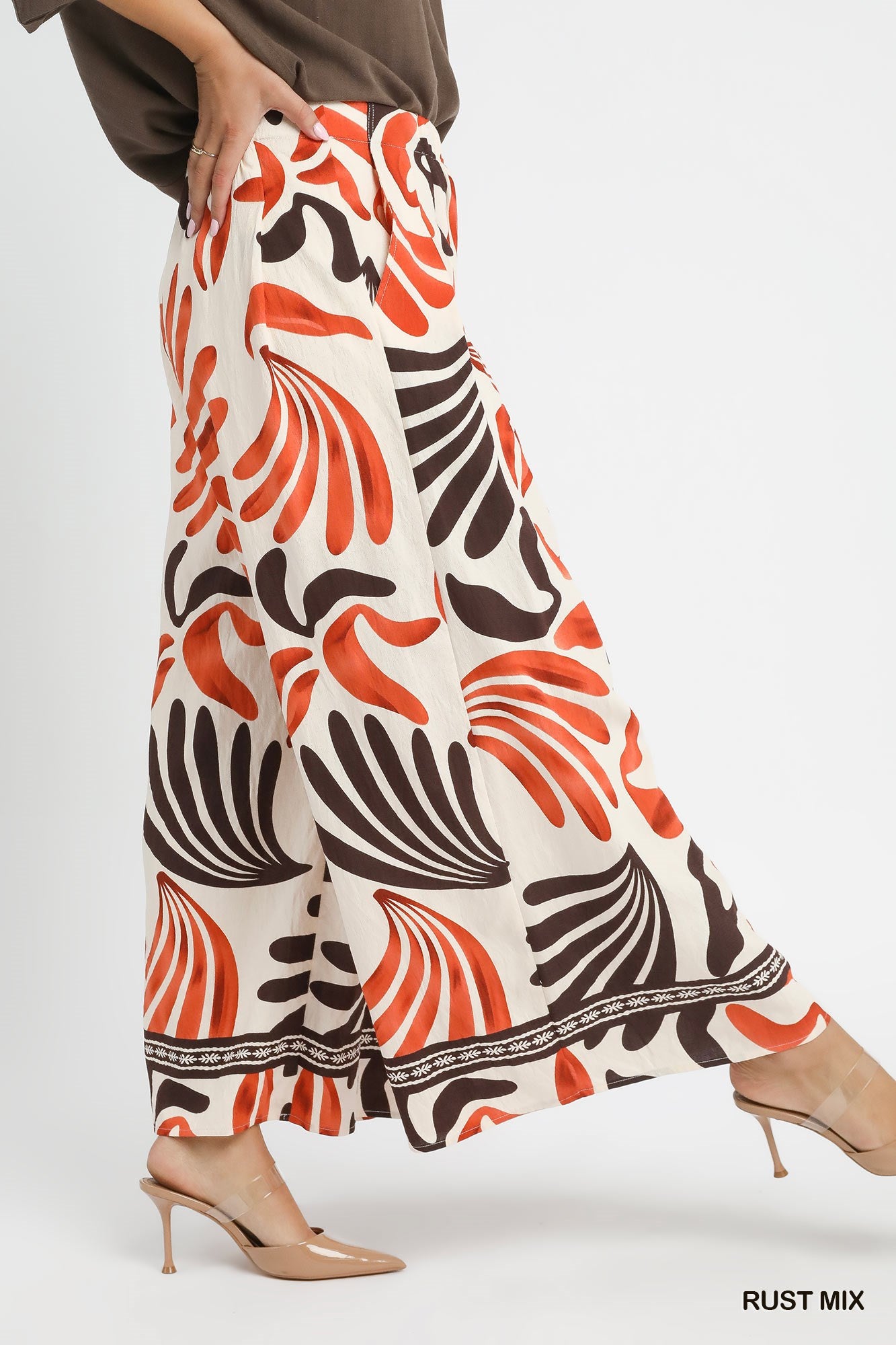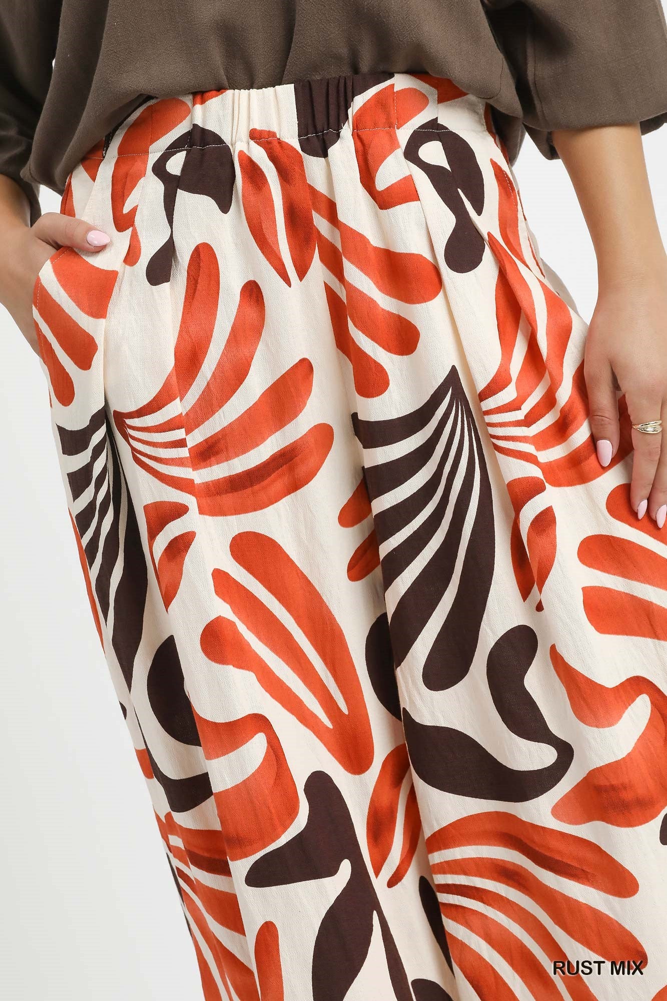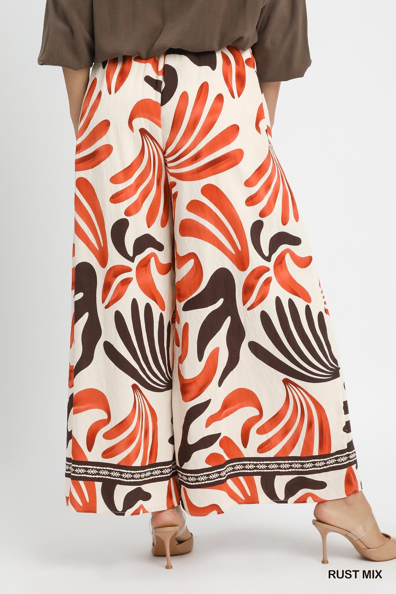 Floral Breeze High-Waisted Pants – Flowy Elegance in Gray, Rust & Black