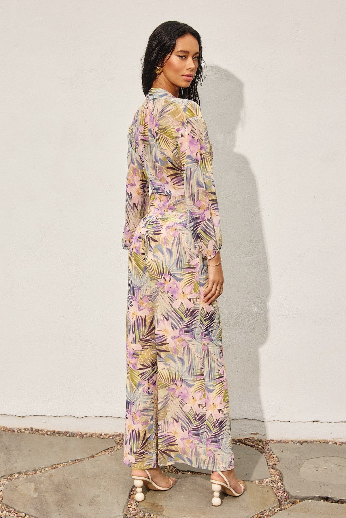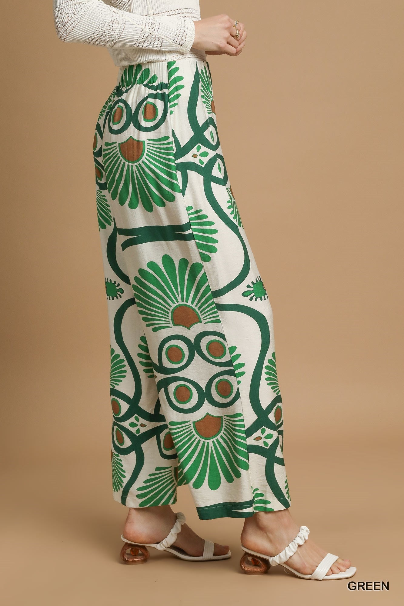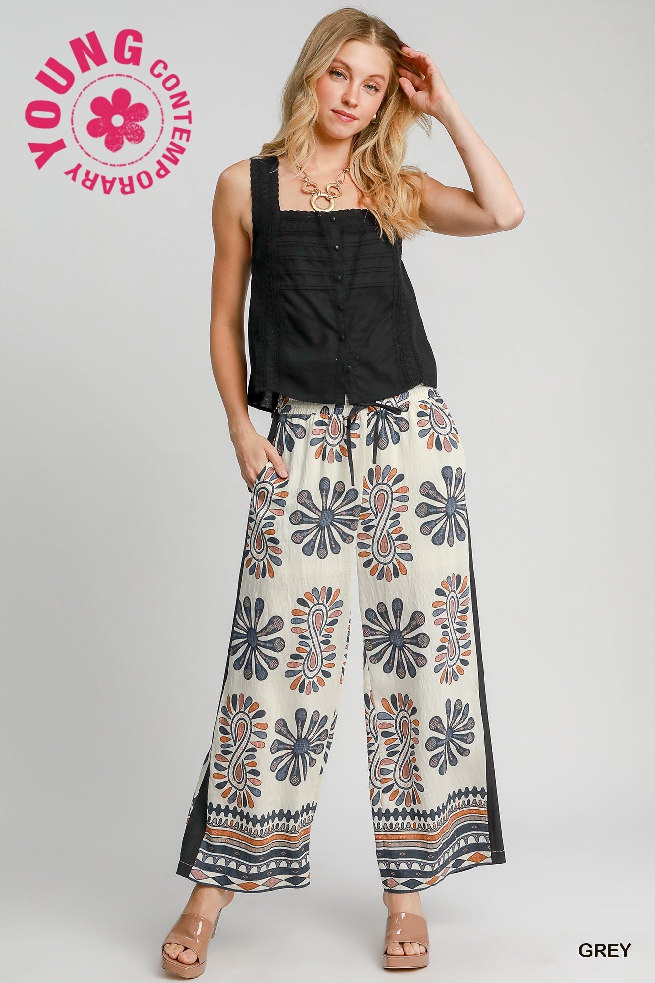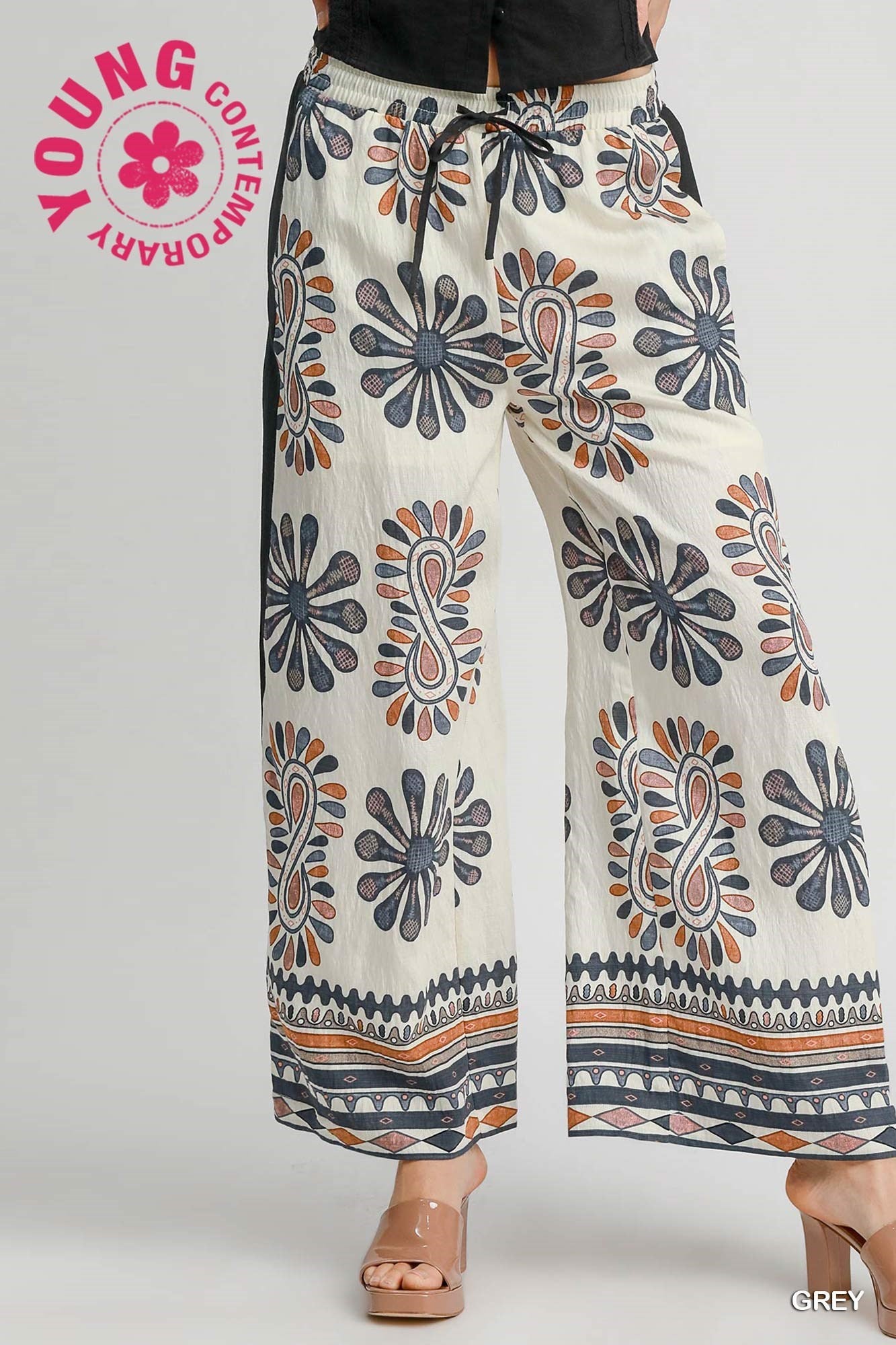 Floral Breeze High-Waisted Pants – Flowy Elegance in Gray, Rust & Black