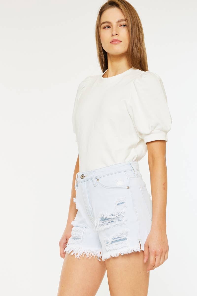 Coastal Cool: High-Rise Frayed Denim Shorts – Laid-Back by the Shore