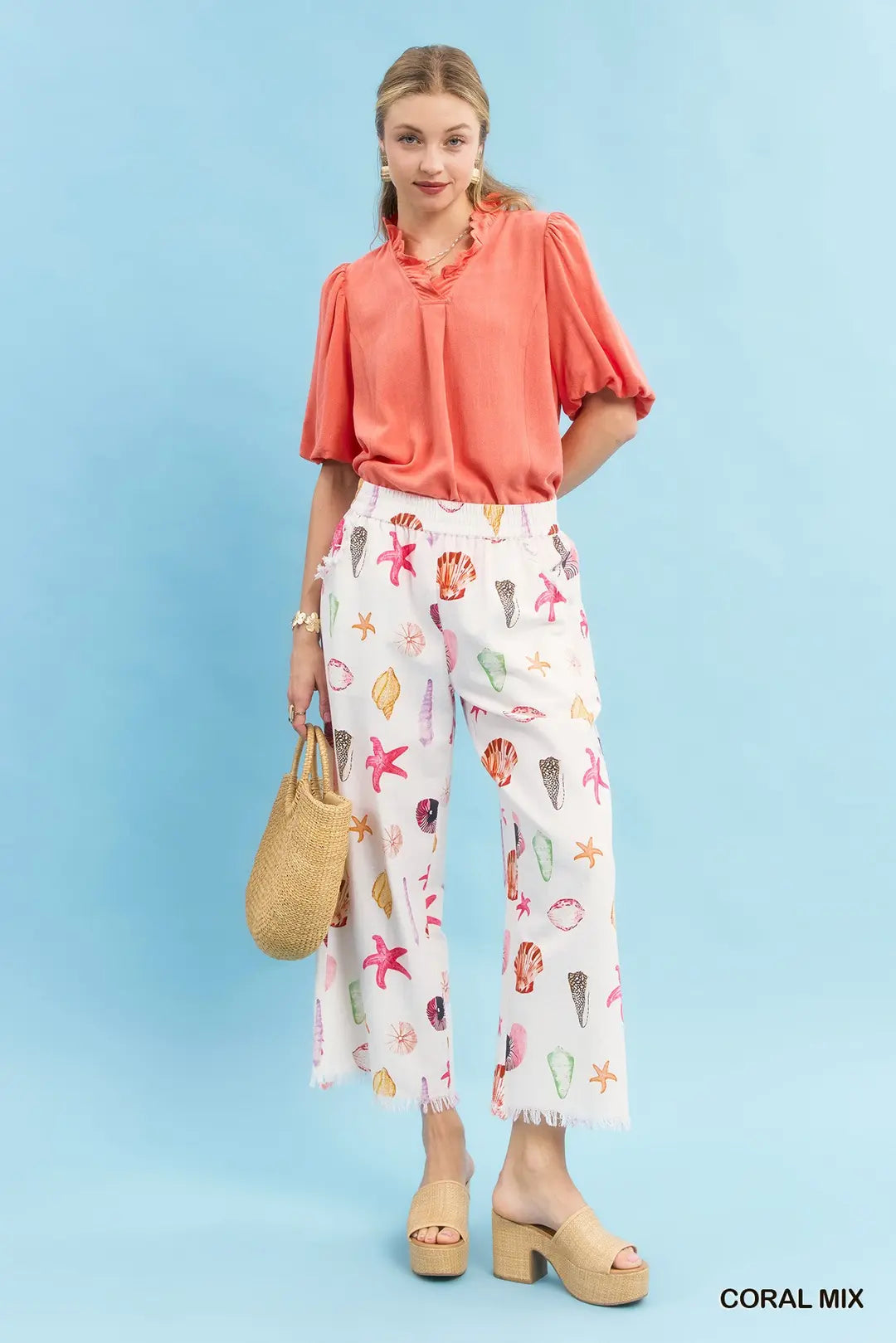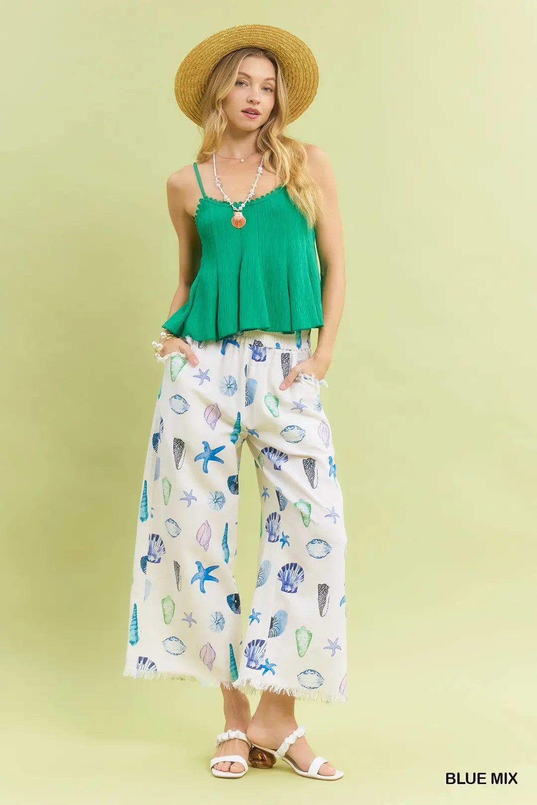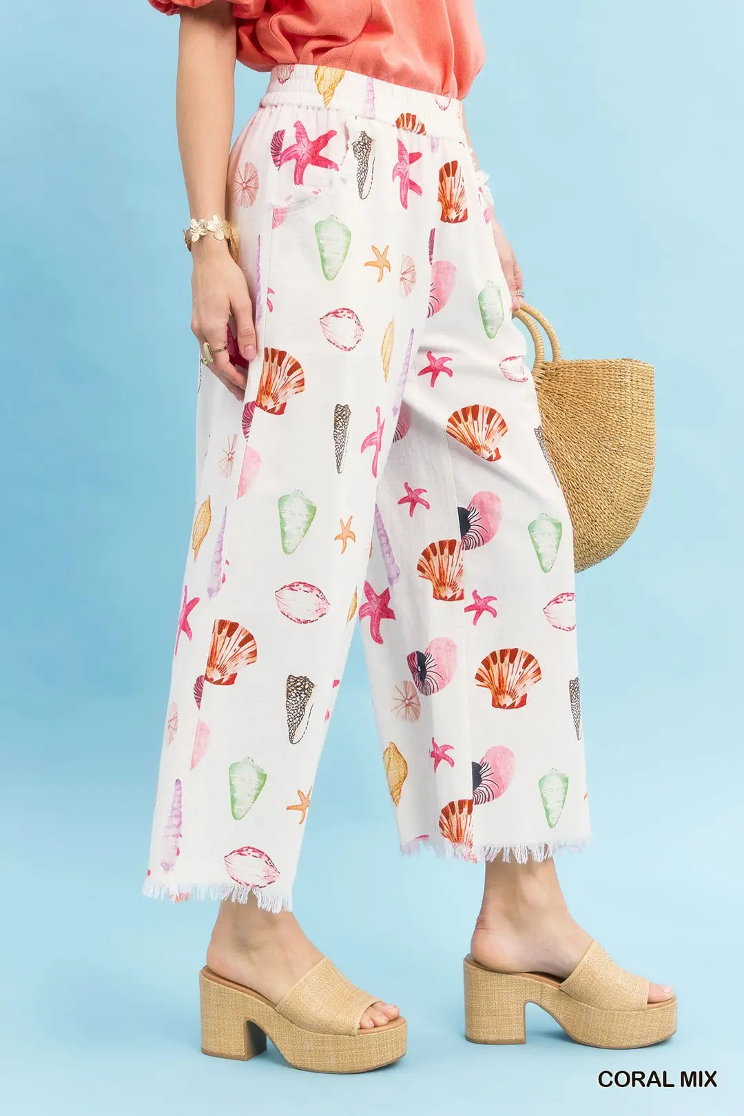 Coastal Breeze Frayed Hem Pants (Oatmeal, Navy, Latte, and Brown)