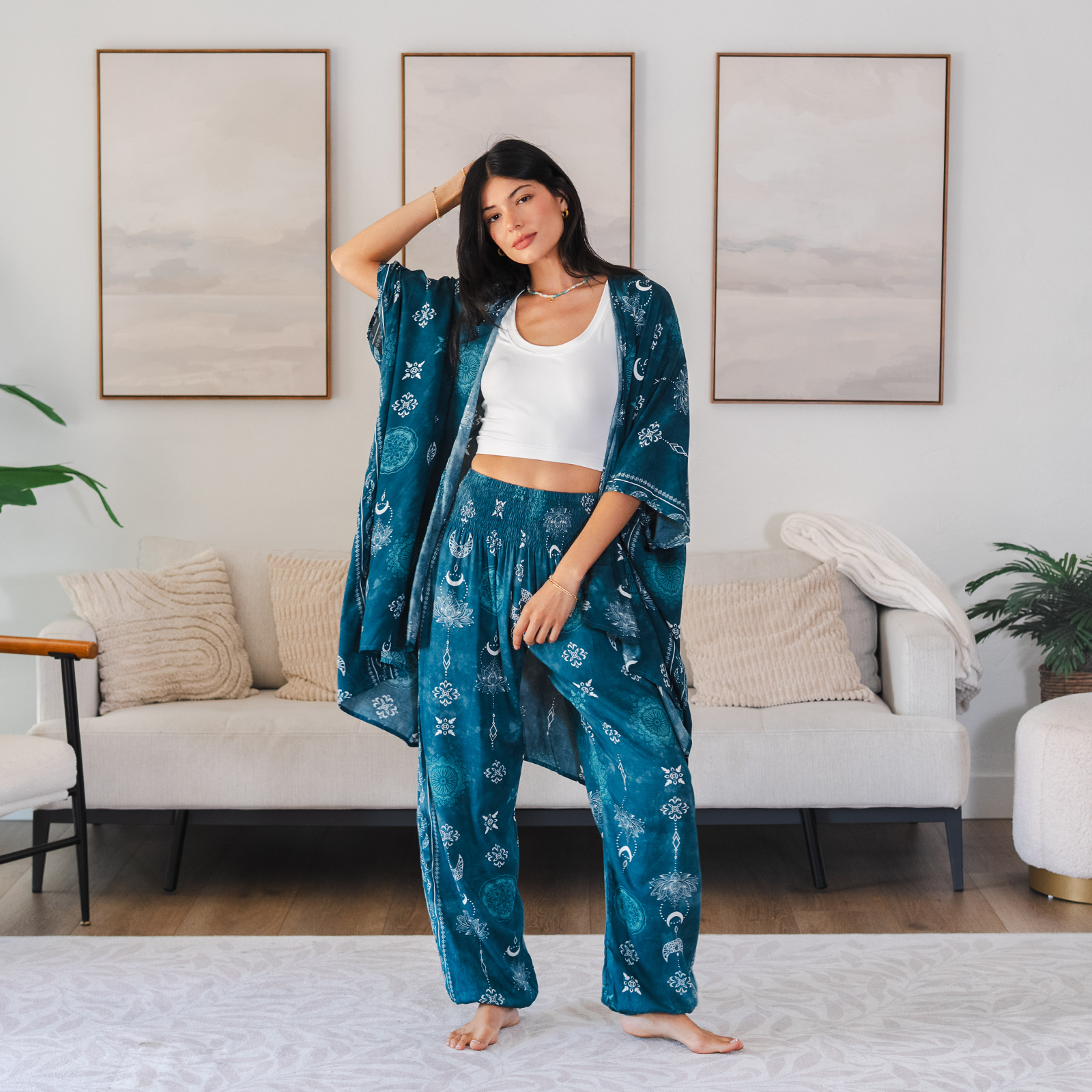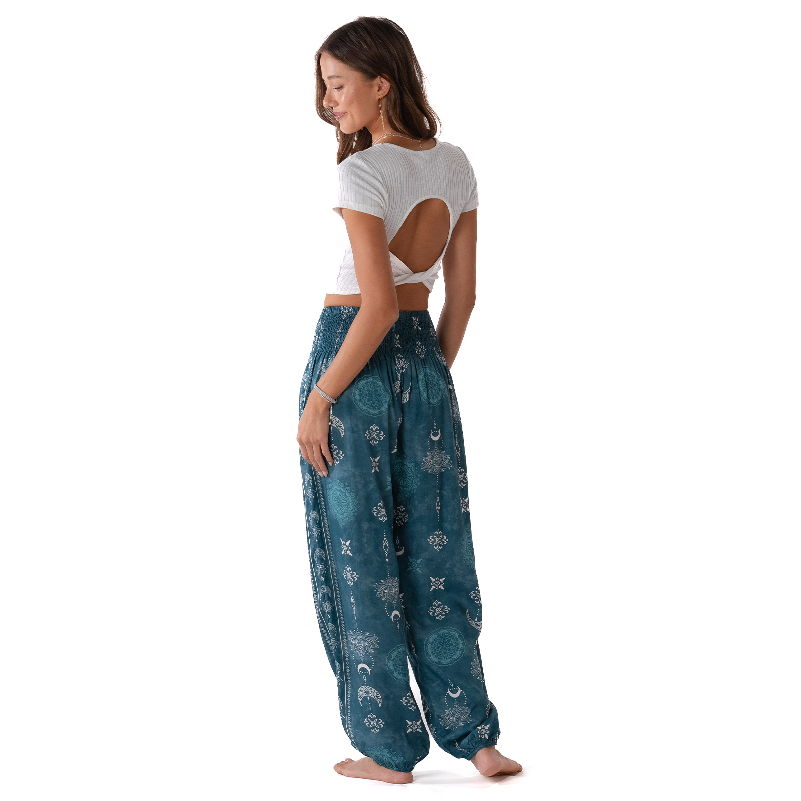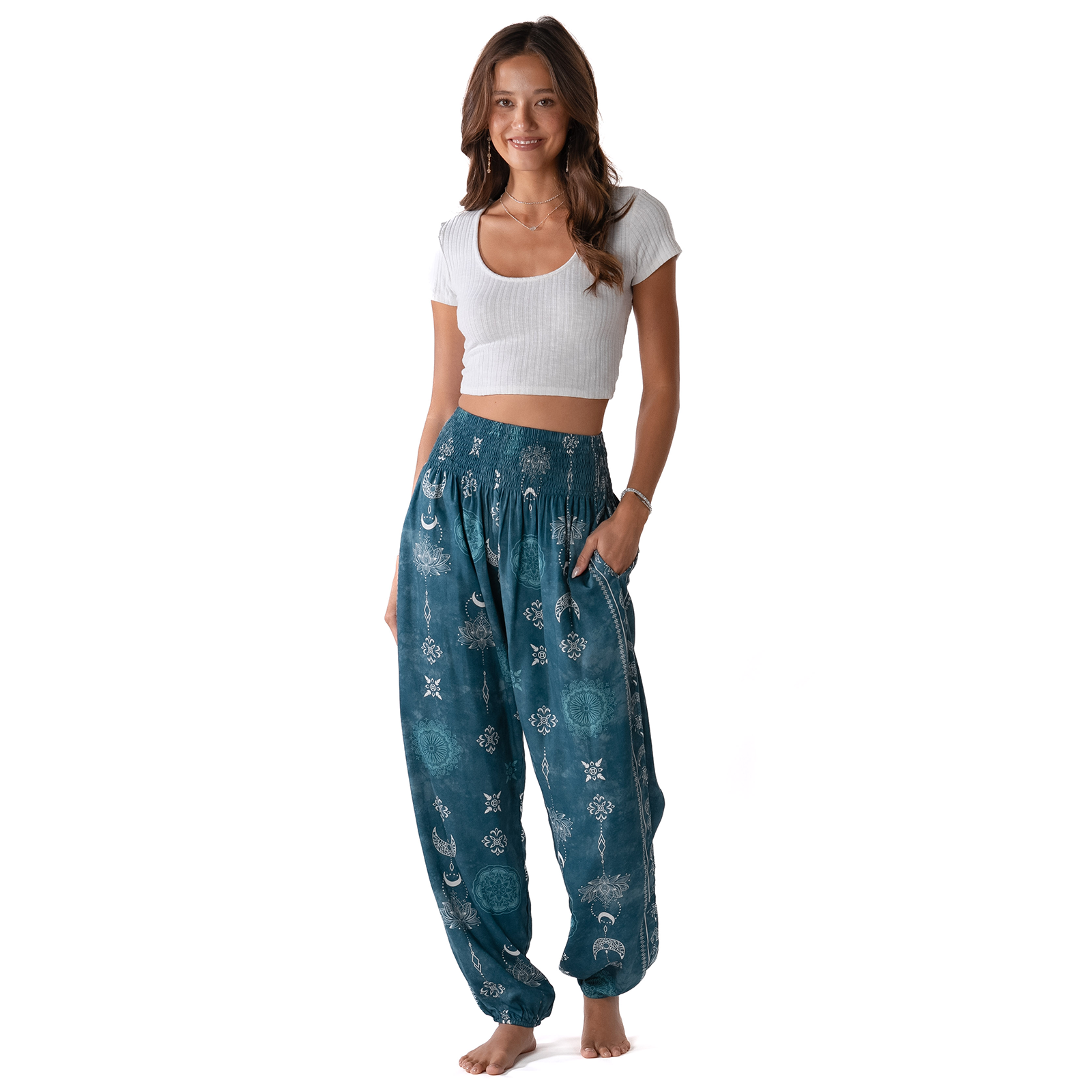 Sure, you could put on those leggings again—or you could slip into the Comfiest Pants on Earth and feel like the world’s most relaxed diva. Featuring our buttery soft fabric and signature smocked waistband, these cozy favorites are perfect for embracing the fresh energy of spring. Whether you're relaxing at home or enjoying the outdoors, our Harem Pants offer the ideal blend of comfort and style for the new season. Pair these with a tee, crop top, or tank! Elastic cuffs let you wear them as long or as short as you like. Handmade in Thailand; each pair comes with the photo and story of the artisan who created it.