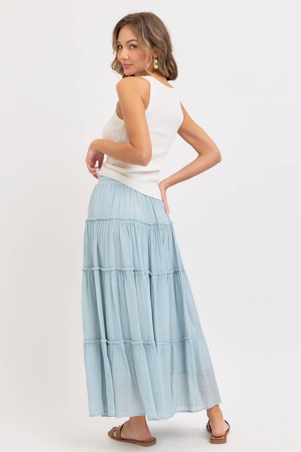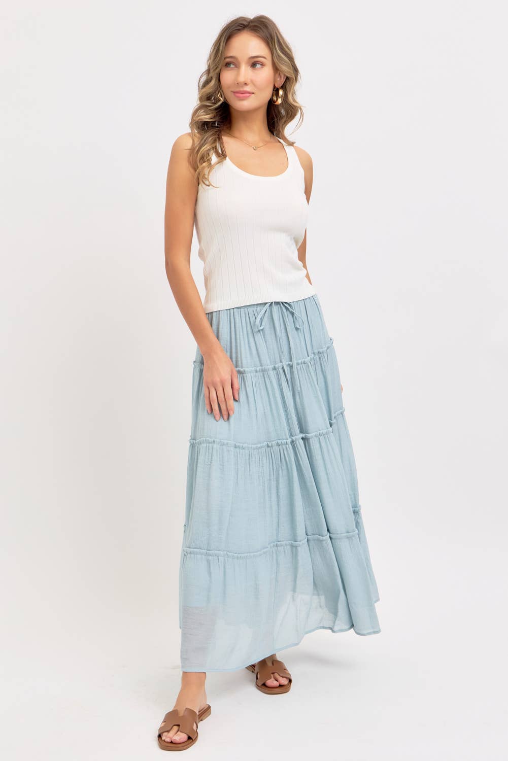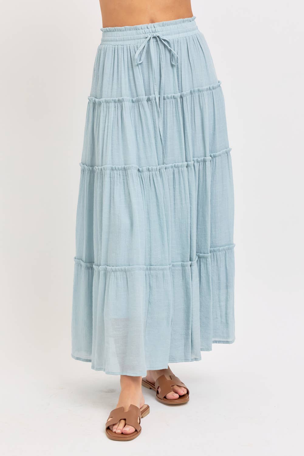 Misty Blue Tiered Maxi Skirt – Flowing Femininity, Purely Coastal