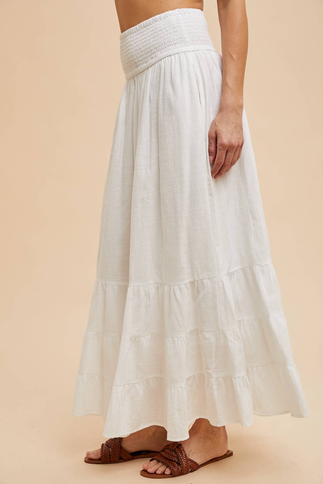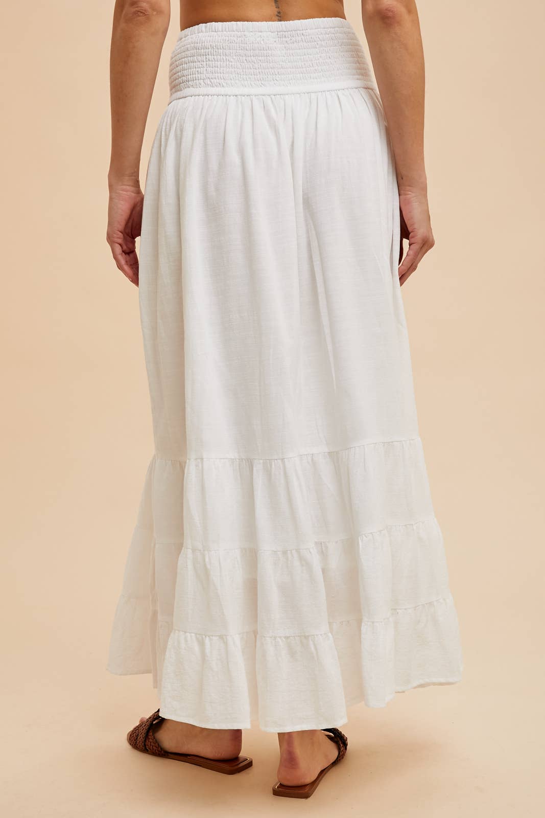 Coastal White Smocked Maxi Skirt – Effortless Flow, Timeless Breeze