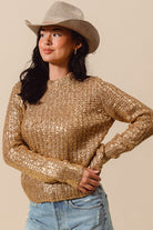 Shine bright this season in our Golden Glow Metallic Crewneck Sweater — a stunning statement piece that captures effortless coastal glam. This soft, shimmering gold sweater is the perfect blend of cozy and chic, making it ideal for holiday parties, coastal gatherings, or a festive night out.