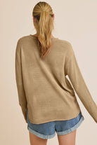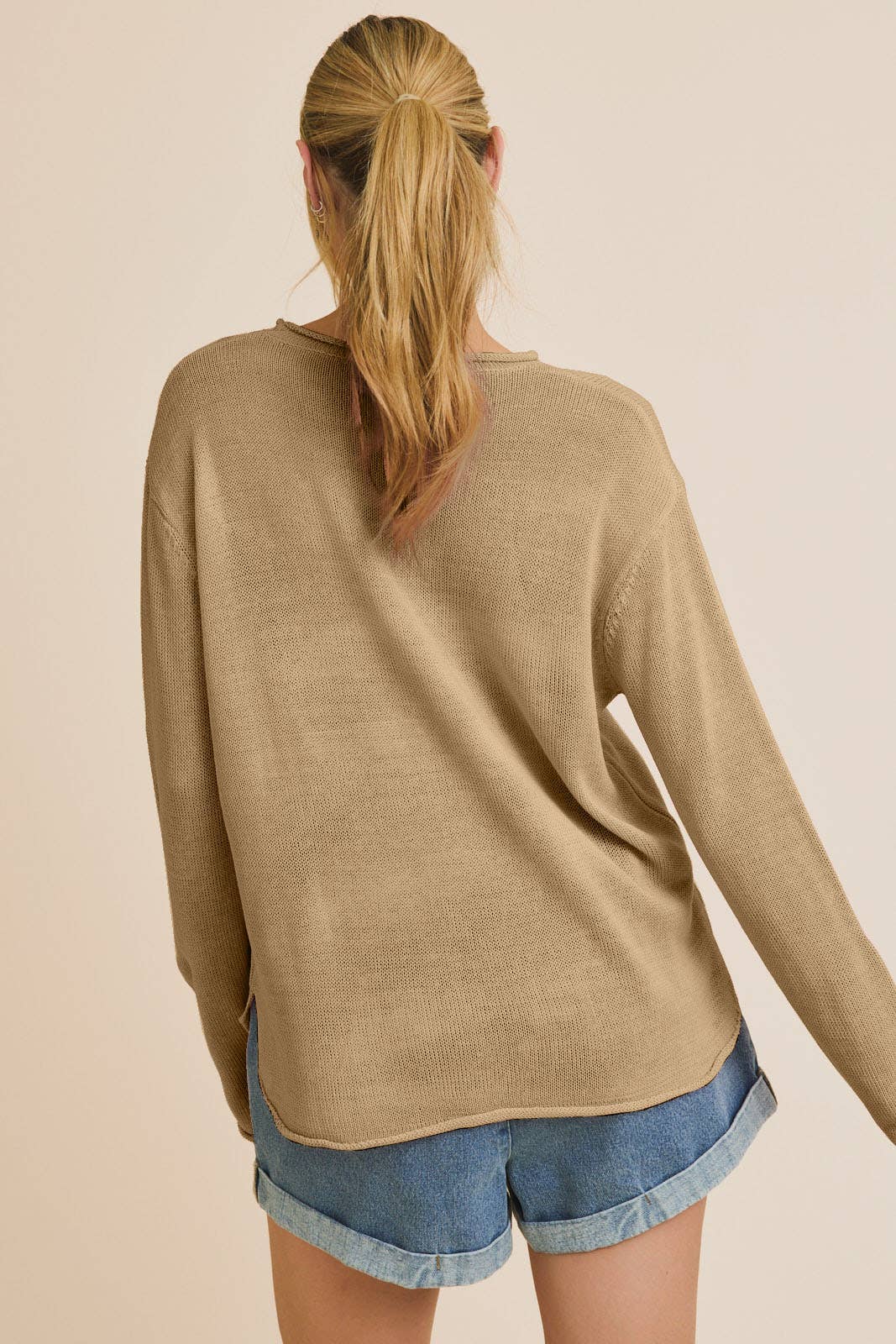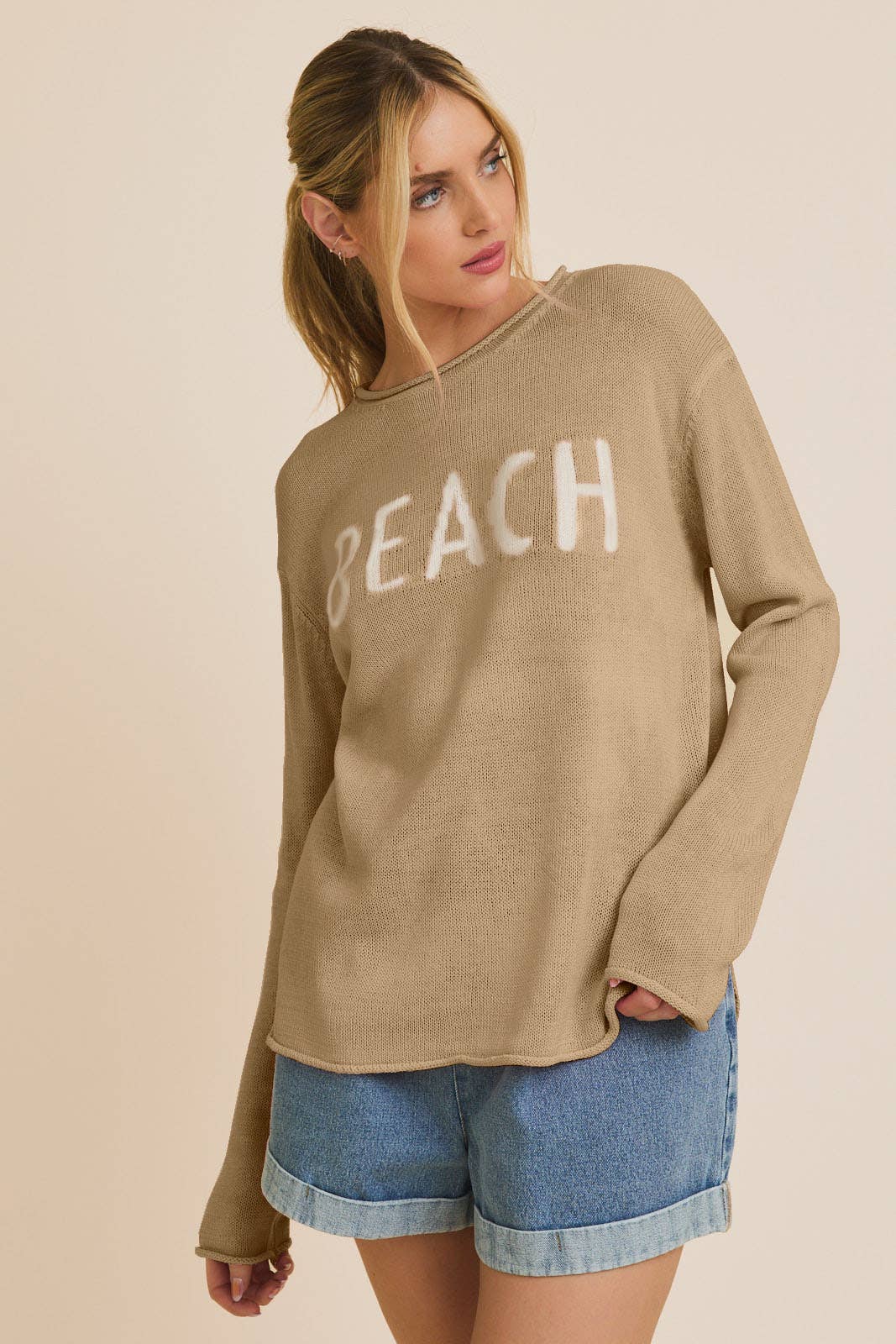 Wrap yourself in year-round coastal comfort with this beautifully lightweight beach sweater. Designed in a soft taupe hue reminiscent of sun-warmed driftwood, it features a classic round neckline and long sleeves for an effortlessly relaxed fit. Perfect for breezy summer evenings, crisp fall mornings, or layering through the cooler months, this versatile piece captures the easy elegance of seaside living.