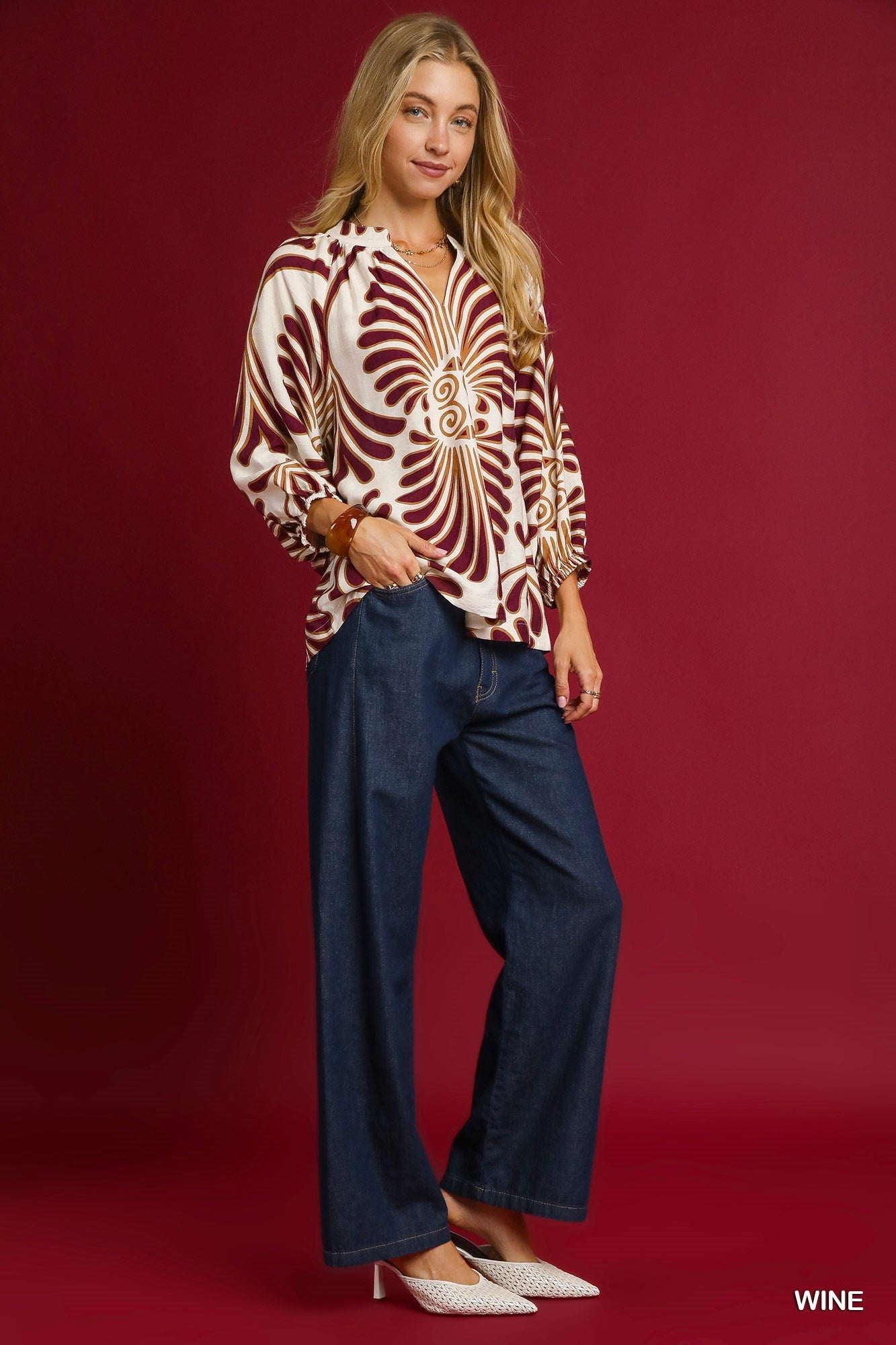 Full of movement and modern charm, the Coastal Drift Abstract Top brings an artistic edge to your coastal wardrobe. With its flowing silhouette, soft V-neckline with gentle gathers, and long sleeves finished with ruched elastic cuffs, this lightweight top is effortlessly elegant. The abstract print adds a free-spirited feel, while the subtle high-low hem gives it an easy, flattering drape. Perfect for pairing with denim, linen, or wide-leg trousers, it’s a go-to piece for breezy days, shoreline dinners, or spontaneous weekend getaways.