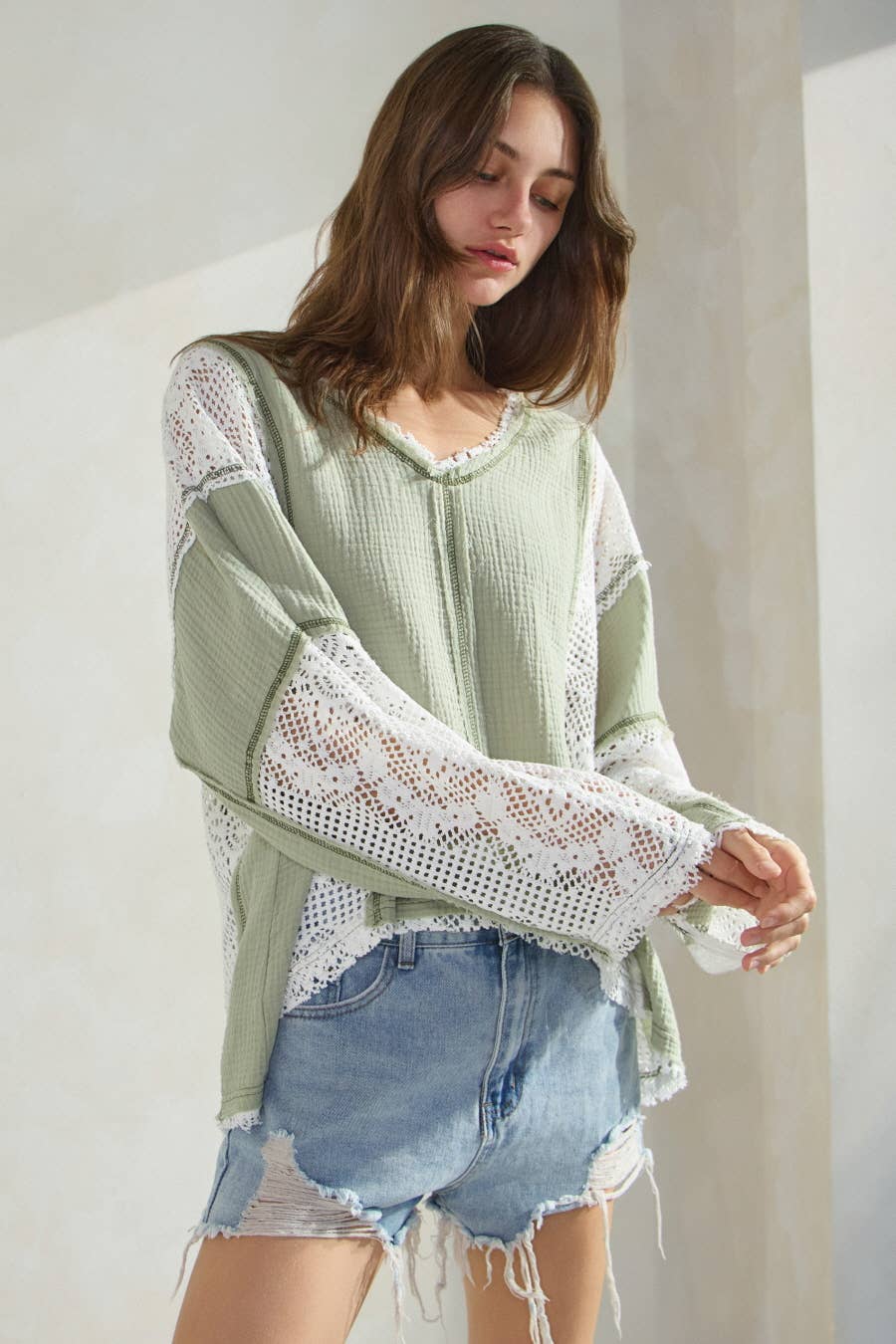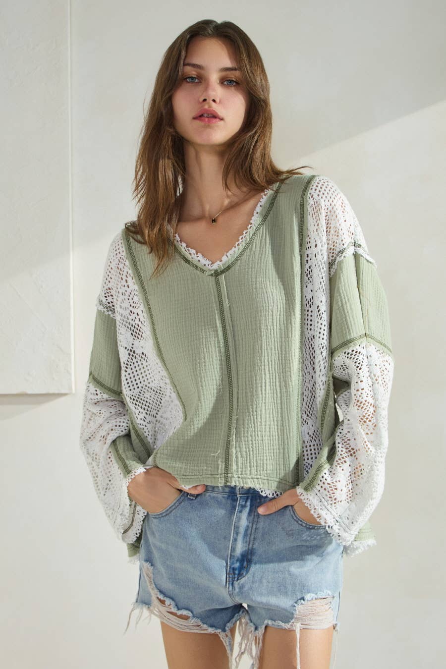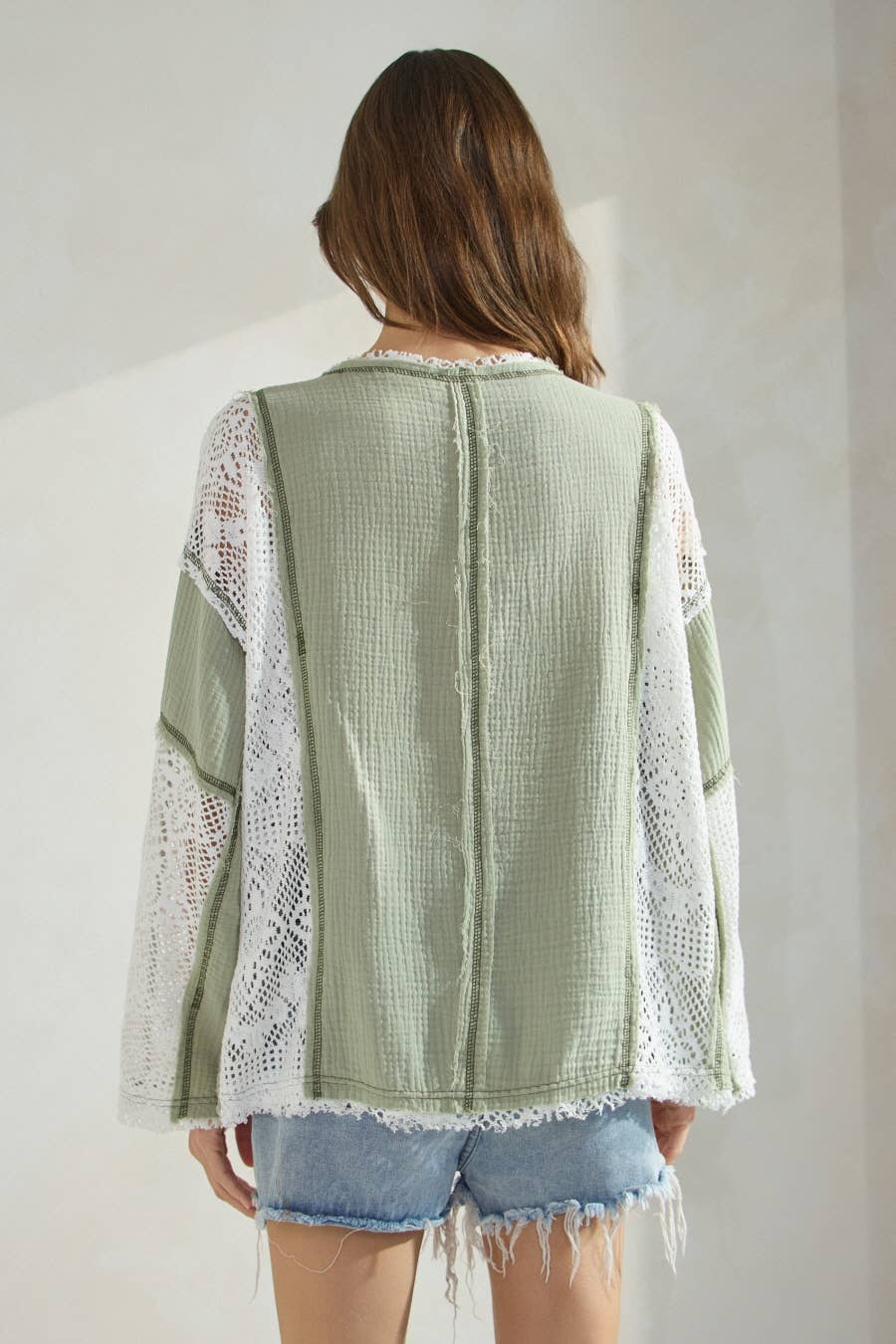 Sage Cotton Gauze Lace Top – Light Layers with Coastal Grace