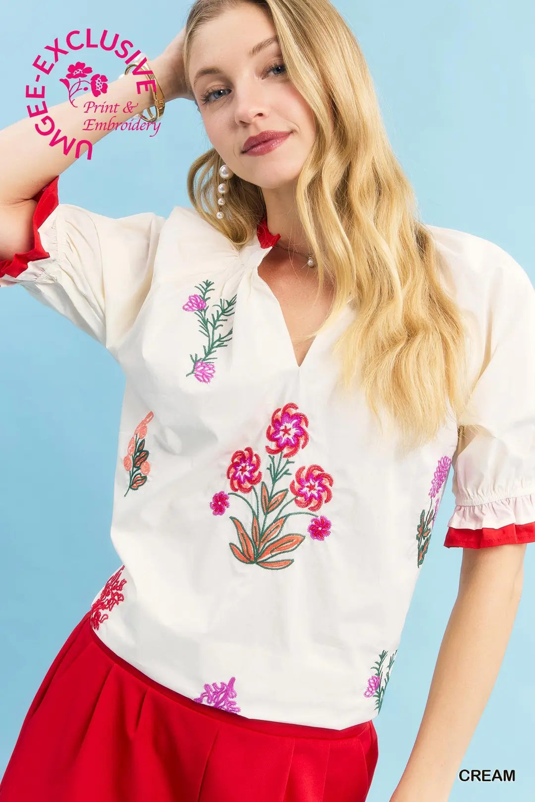 Embroidered Bloom Ruffle Top
