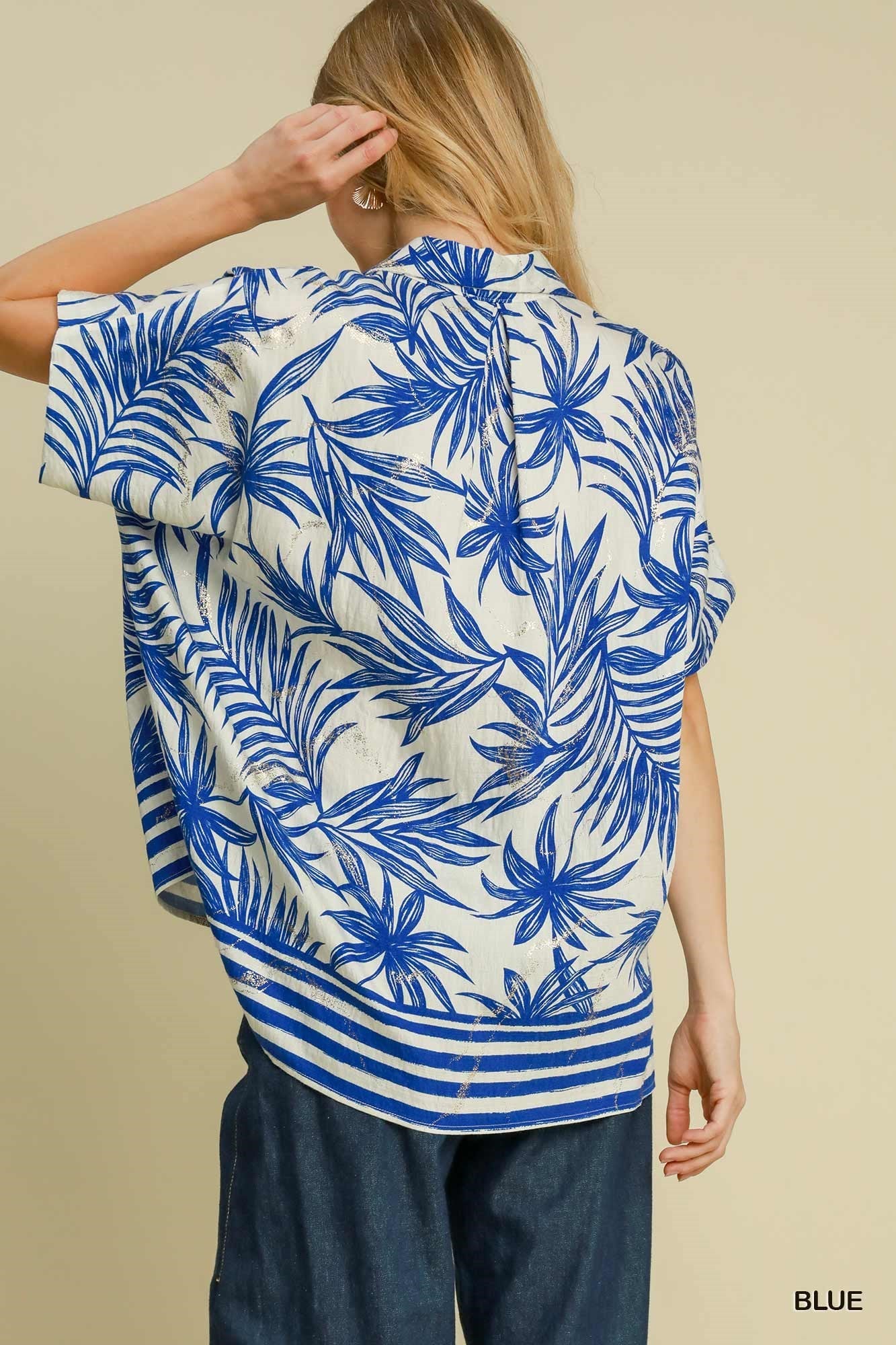Tropical Breeze Cobalt Blue Button-Up Shirt