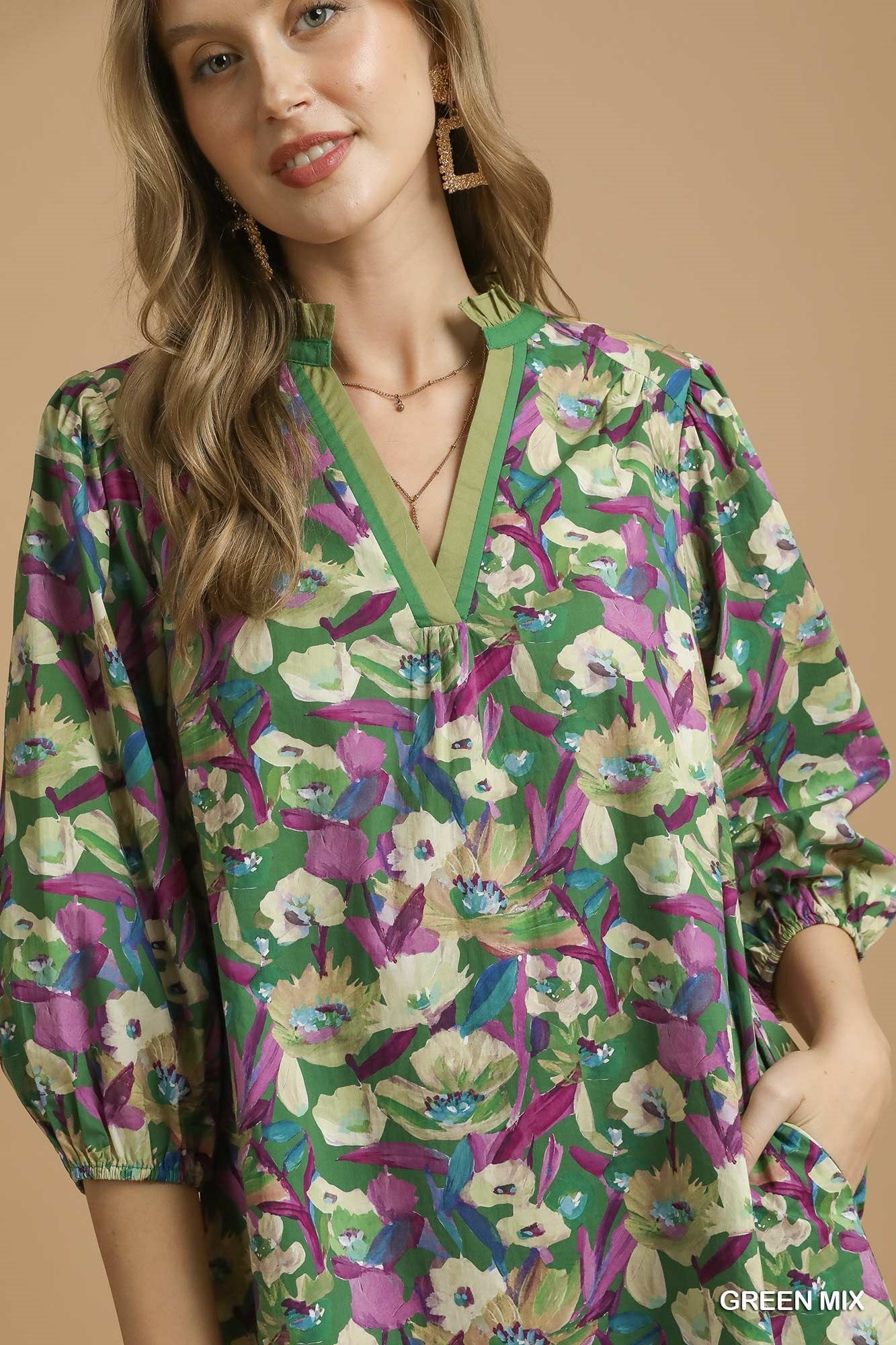 Coastal Paisley Plus Puff Sleeve Blouse