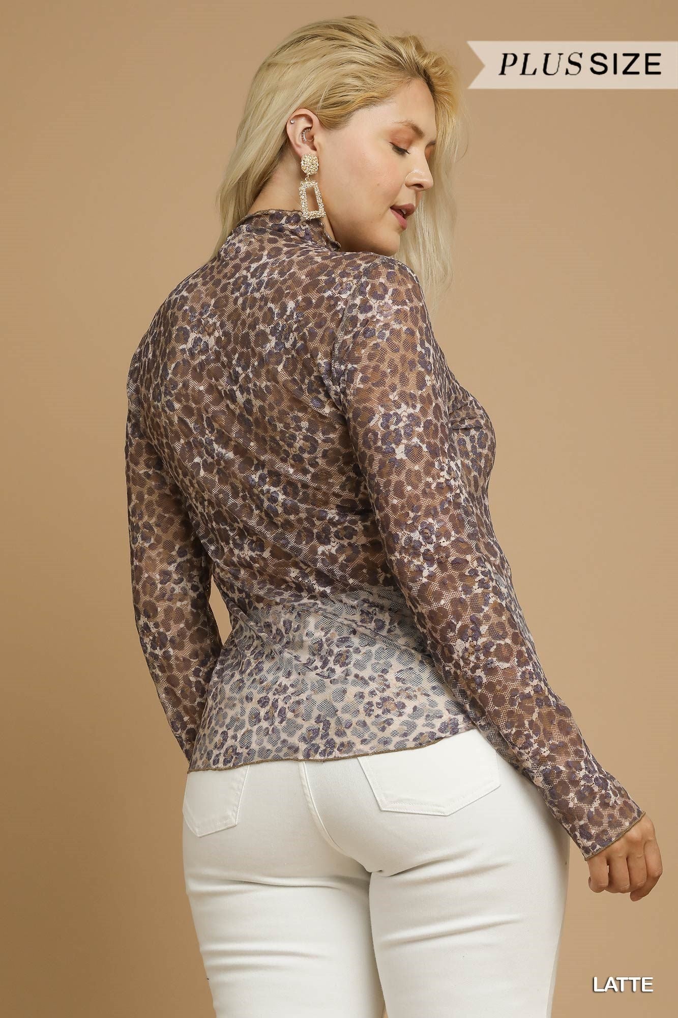 Unleash your bold, coastal edge with the Coastal Wild Mesh Leopard Top. Designed in a sheer, lightweight mesh with a sleek mock neckline and fitted silhouette, this plus-size long sleeve top is equal parts fierce and feminine. Perfect for layering over a cami or under a jacket, it brings a hint of sultry style to breezy beach nights or chic coastal dinners. Pair it with wide-leg pants, a mini skirt, or your favorite denim for a versatile look that’s wild, effortless, and unapologetically coastal.