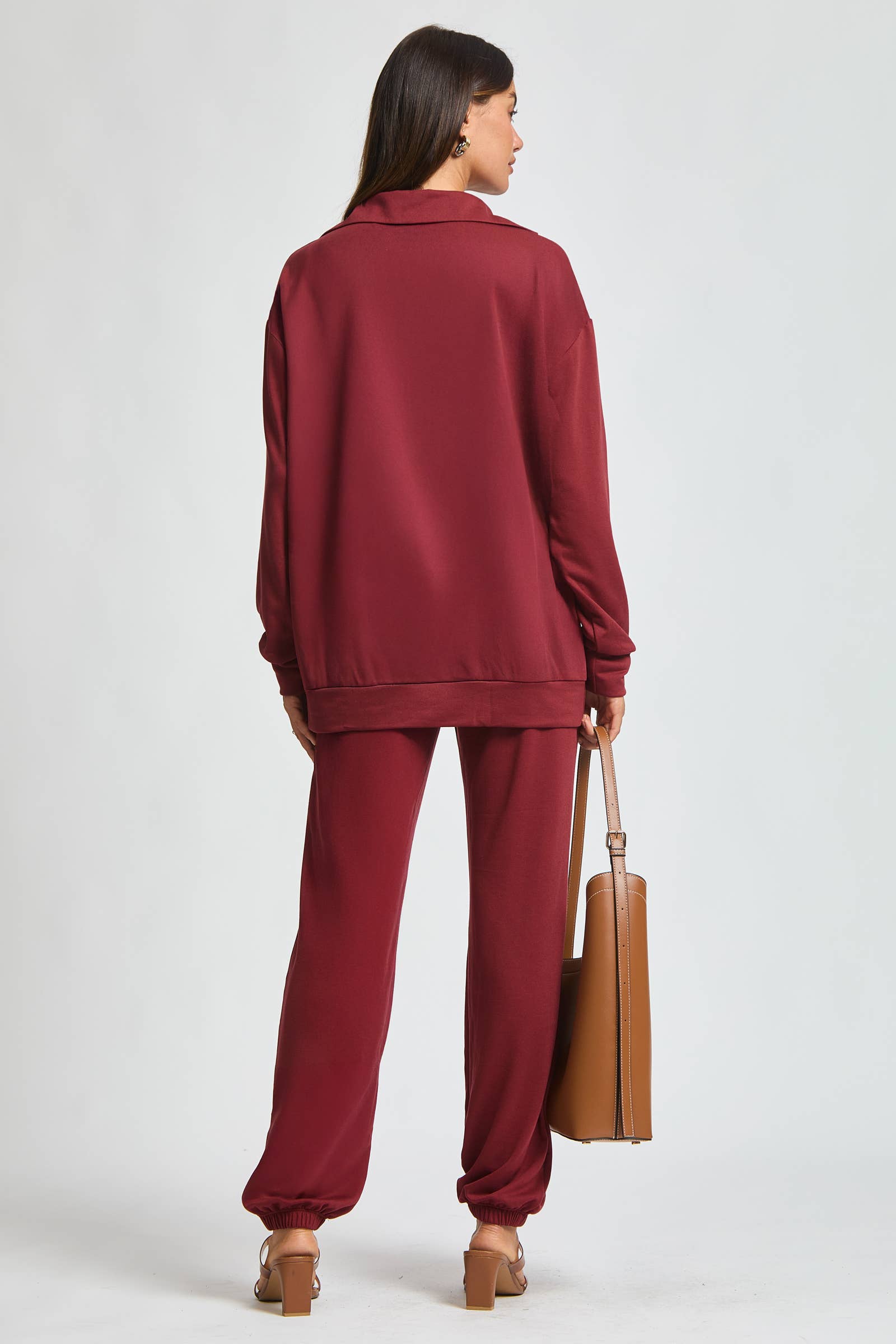 Relaxed meets refined in our Cabernet French Terry Two-Piece Set. Crafted from soft, breathable French terry, this set combines everyday comfort with an effortlessly coastal feel. The collared top brings a polished touch, while the matching joggers feature an easy elastic waist and pockets for all-day wearability. Perfect for cozy weekends, travel days, or seaside strolls, this versatile set offers the ideal balance of structure and ease. Available in plus size, it’s a timeless lounge look that carries you through every season in coastal style.