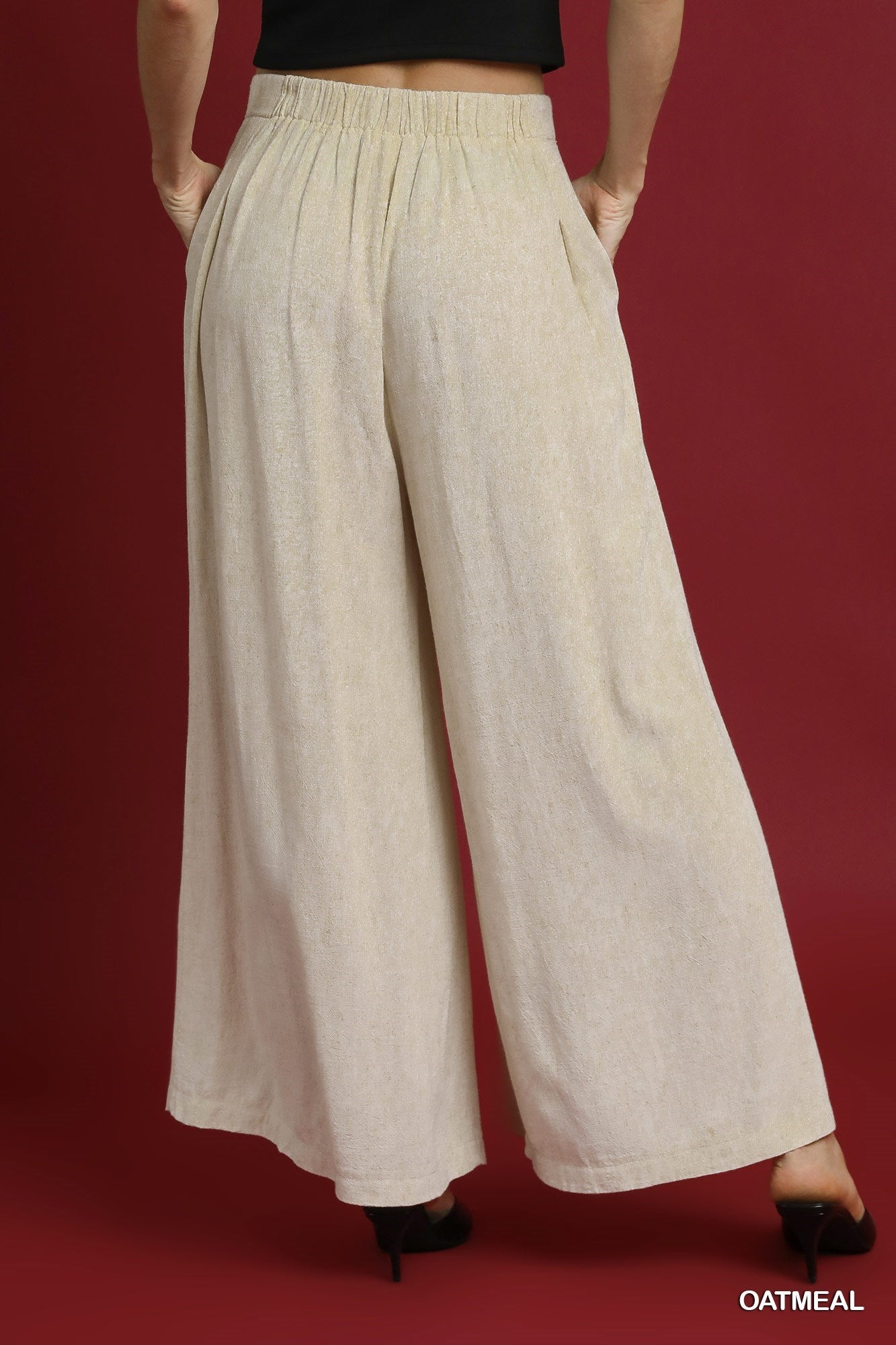 Elevate your coastal wardrobe with these effortlessly chic high-waisted palazzo pants in a soft oatmeal hue. Crafted from a breathable blend of 55% linen and 45% cotton, they feature a comfortable elastic waistband and a relaxed wide-leg silhouette that flows with every step. Whether you’re strolling the shoreline or heading out for brunch, these versatile pants offer laid-back elegance and all-day comfort. A true coastal classic.