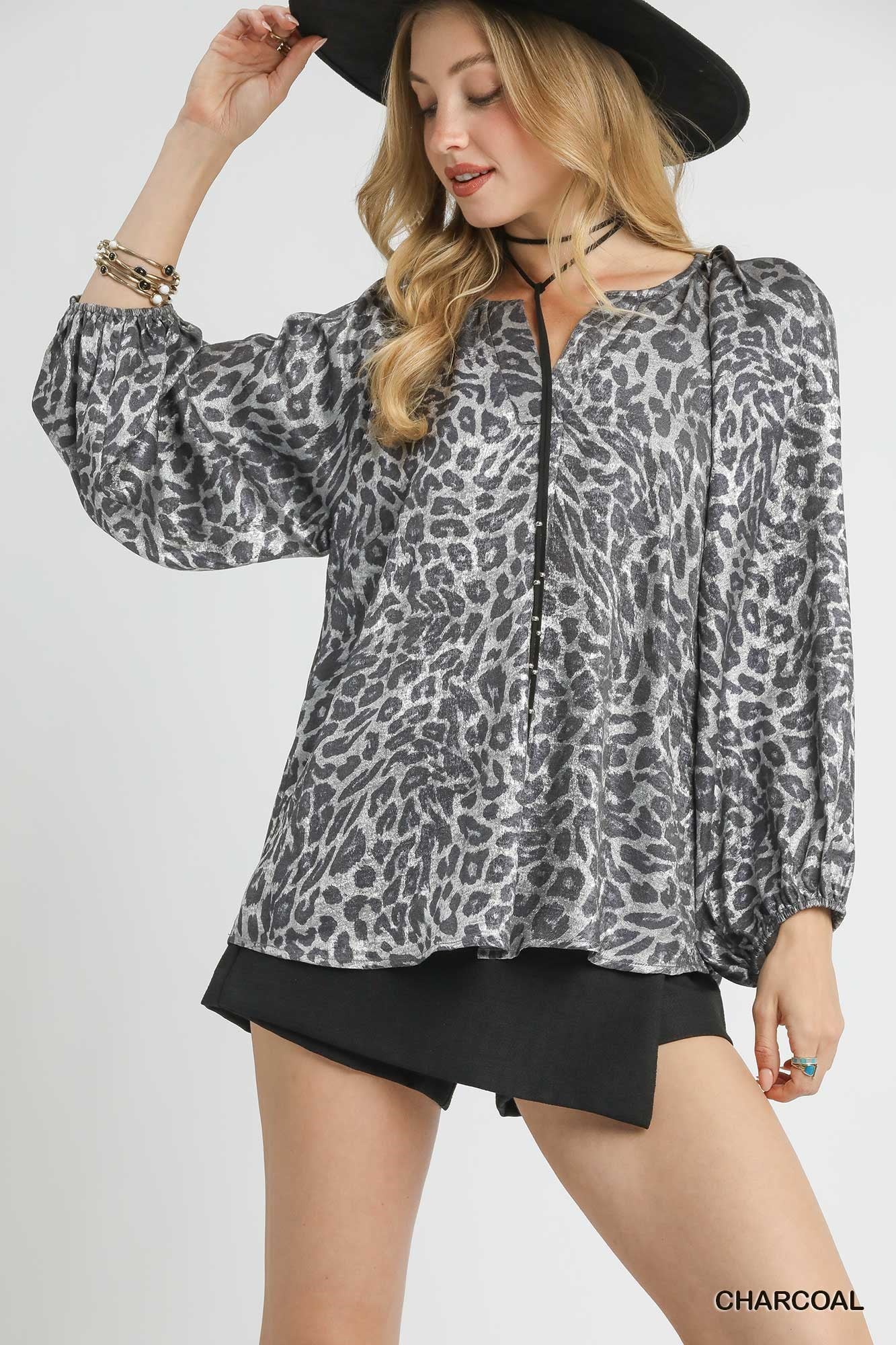 Channel effortless coastal glamour with this flowy metallic leopard print peasant blouse. Designed with a relaxed silhouette and breezy neckline, it blends wild beauty with laid-back luxury. The soft shimmer catches the light like sunshine on the water—perfect for seaside dinners, beachside strolls, or resort-ready moments. Pair it with white denim or linen pants for a look that’s both bold and breezy.