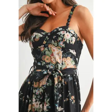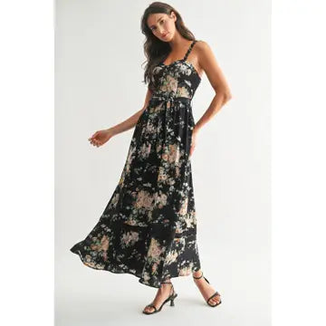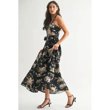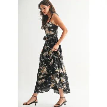Evoke seaside sophistication in the Midnight Bloom Sleeveless Maxi. Set against a timeless black backdrop, soft floral detailing drifts like petals on the ocean breeze—offering an elegant, coastal-inspired take on the classic maxi silhouette. With its sleeveless design and flowing lines, this dress transitions effortlessly from a daytime waterfront brunch to an evening beachside soiree or even a polished event in the city. Crafted from premium, high-quality fabric for all-day comfort, it’s a stunning blend of grace, versatility, and coastal charm.