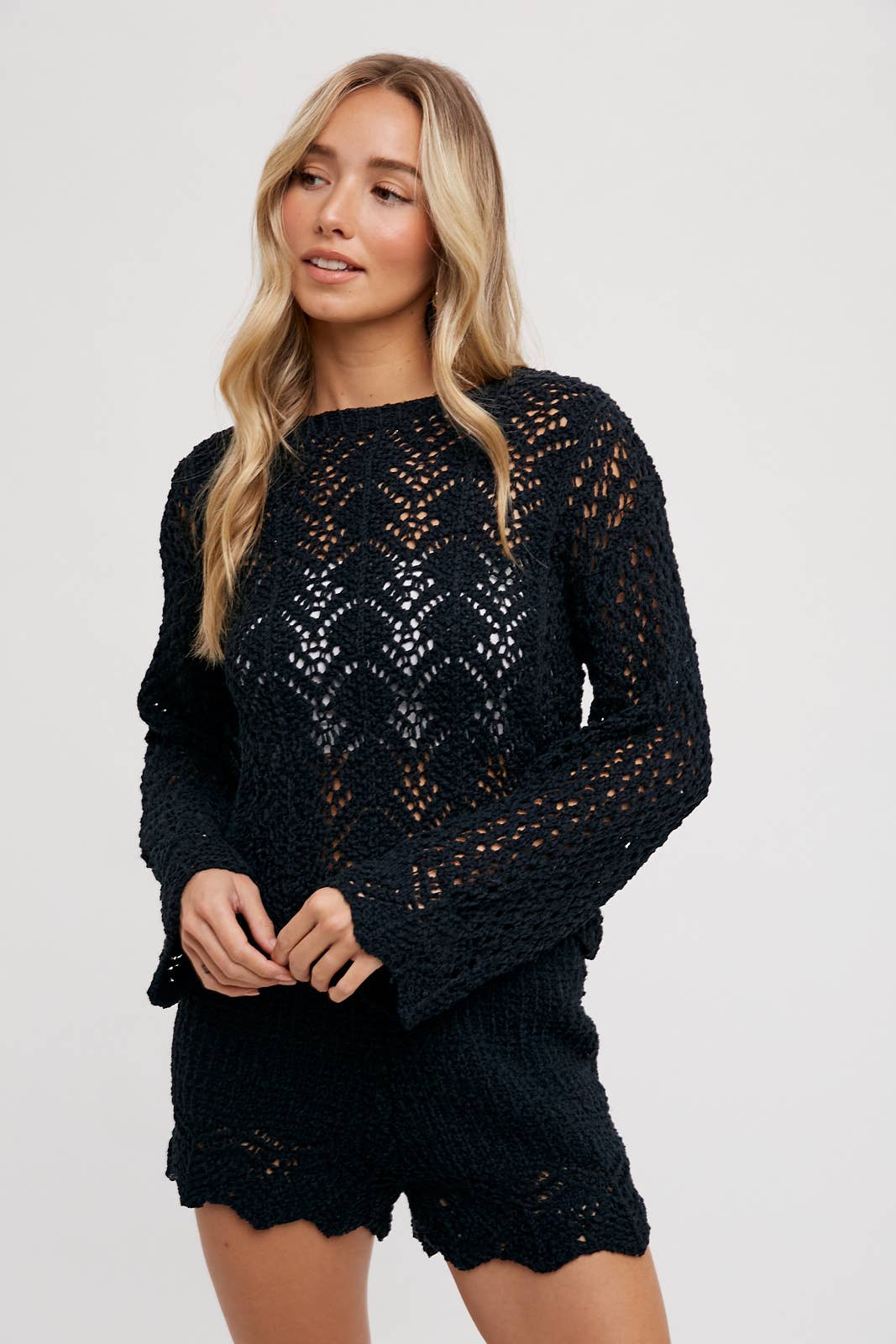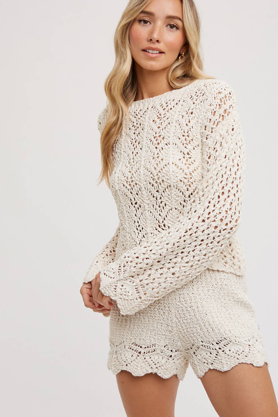 OPEN KNIT SWEATER PULLOVER & SHORTS SET