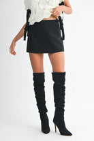Sleek, sculpted, and made to elevate—our Seaside Noir High-Waisted Mini Skort is your new coastal-chic essential. Crafted from a luxurious, high-quality blend, this solid black skort features a flattering high-rise waist, a smooth invisible side zipper, and a fully lined interior for all-day comfort. The silhouette offers the perfect balance of structure and stretch, giving you a tailored look with the ease of a short underneath.