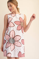 Breathe in the salt air and step into effortless charm with our Coastal Petals Eyelet Mini. This sleeveless stunner features delicate floral eyelet imprints in soft shades of mauve, coastal aqua, warm brown, and cream—bringing beachy elegance to life. Crafted in 100% breathable cotton with a soft polyester lining, this fully lined mini dress is as comfortable as it is beautiful. Perfect for seaside brunches, barefoot walks, or any sun-kissed moment, it’s a must-have for your resort-ready wardrobe.